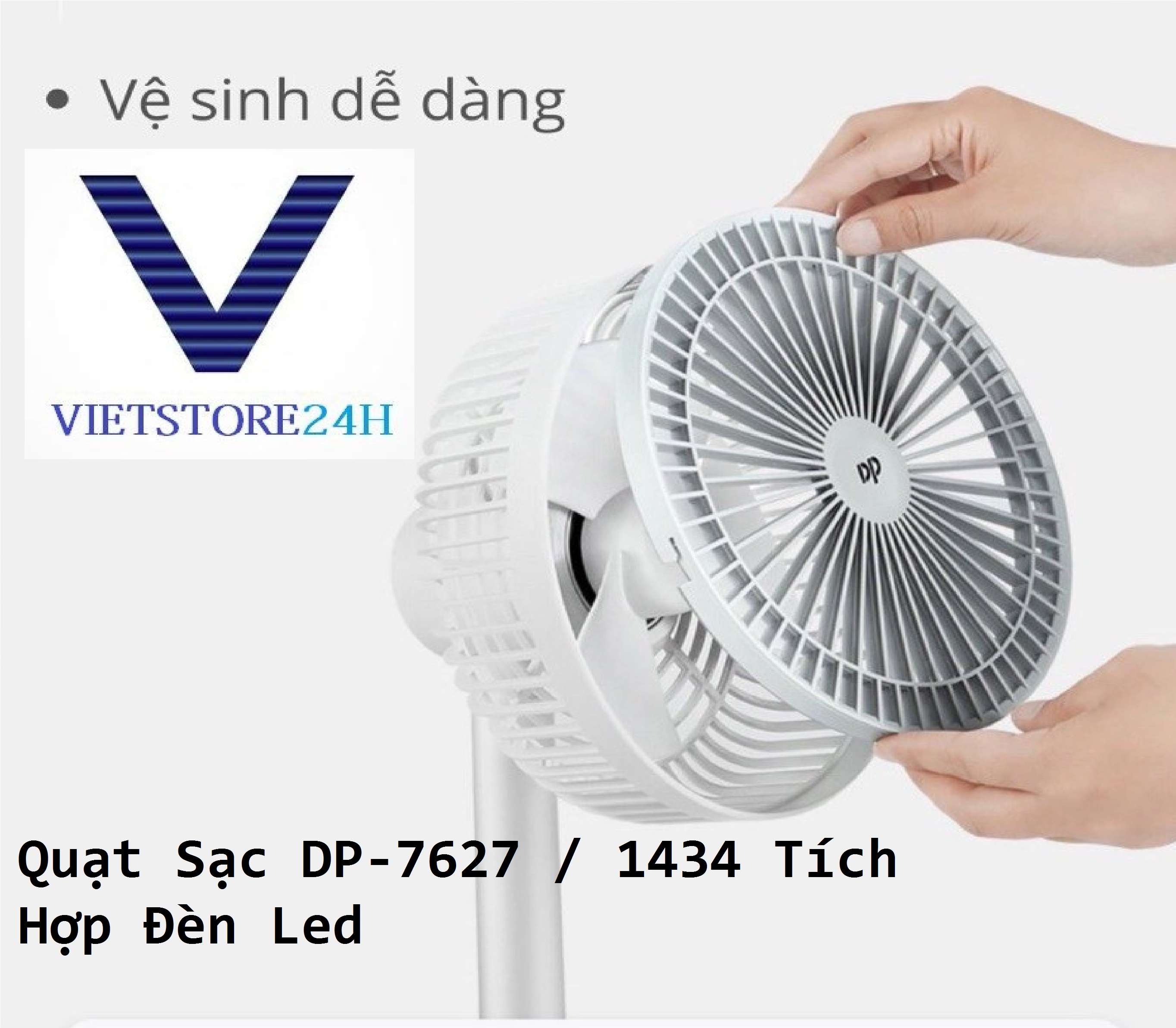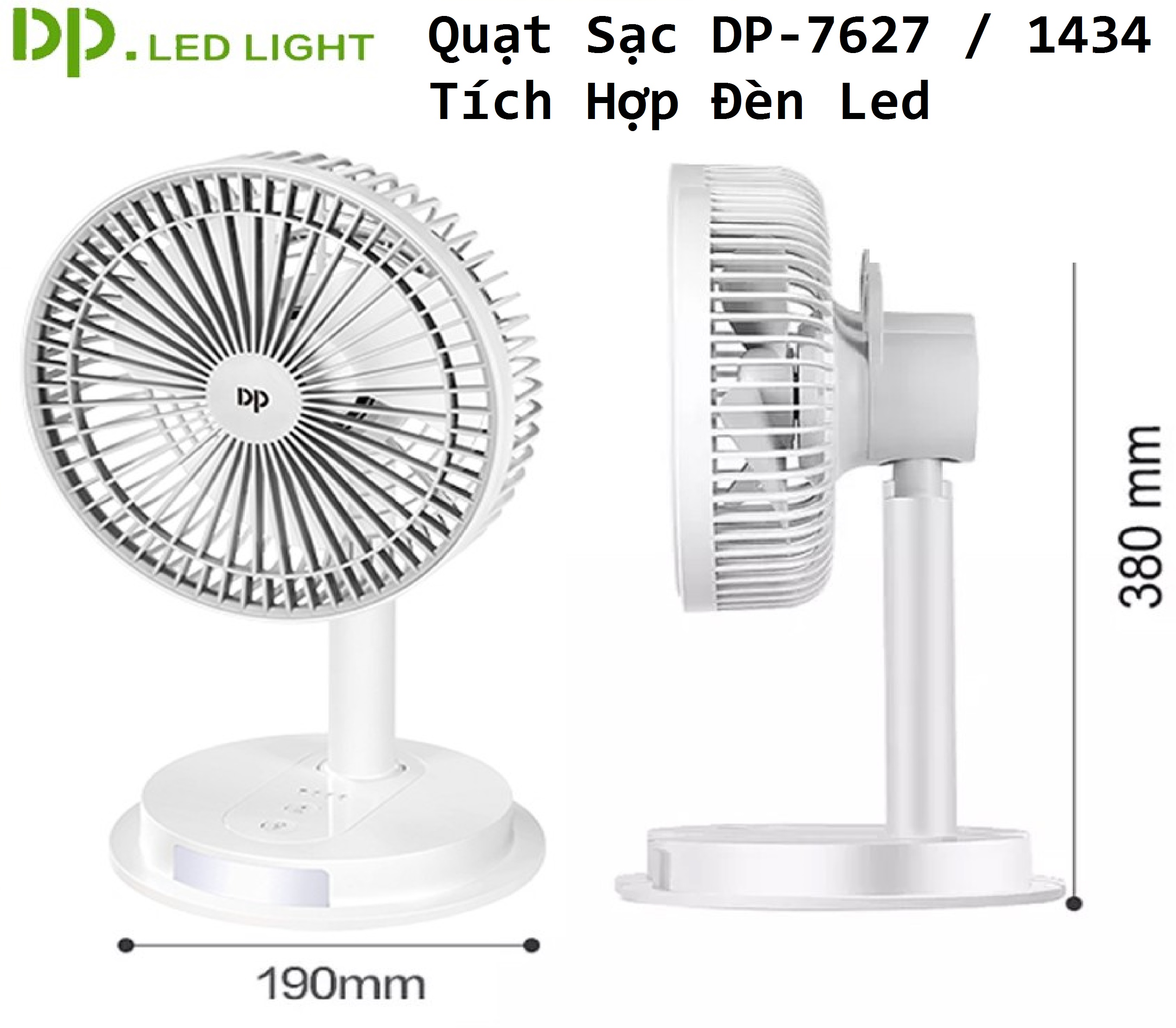 Quạt Sạc DP-7627 / 1434 Tích Hợp Đèn Led #Giới thiệu sản phẩm: - Thương hiệu: DP Electronic nổi tiếng chất lượng - Dòng quạt sạc tích điện lớn DP-7627 / DP-1434 tích hợp đèn