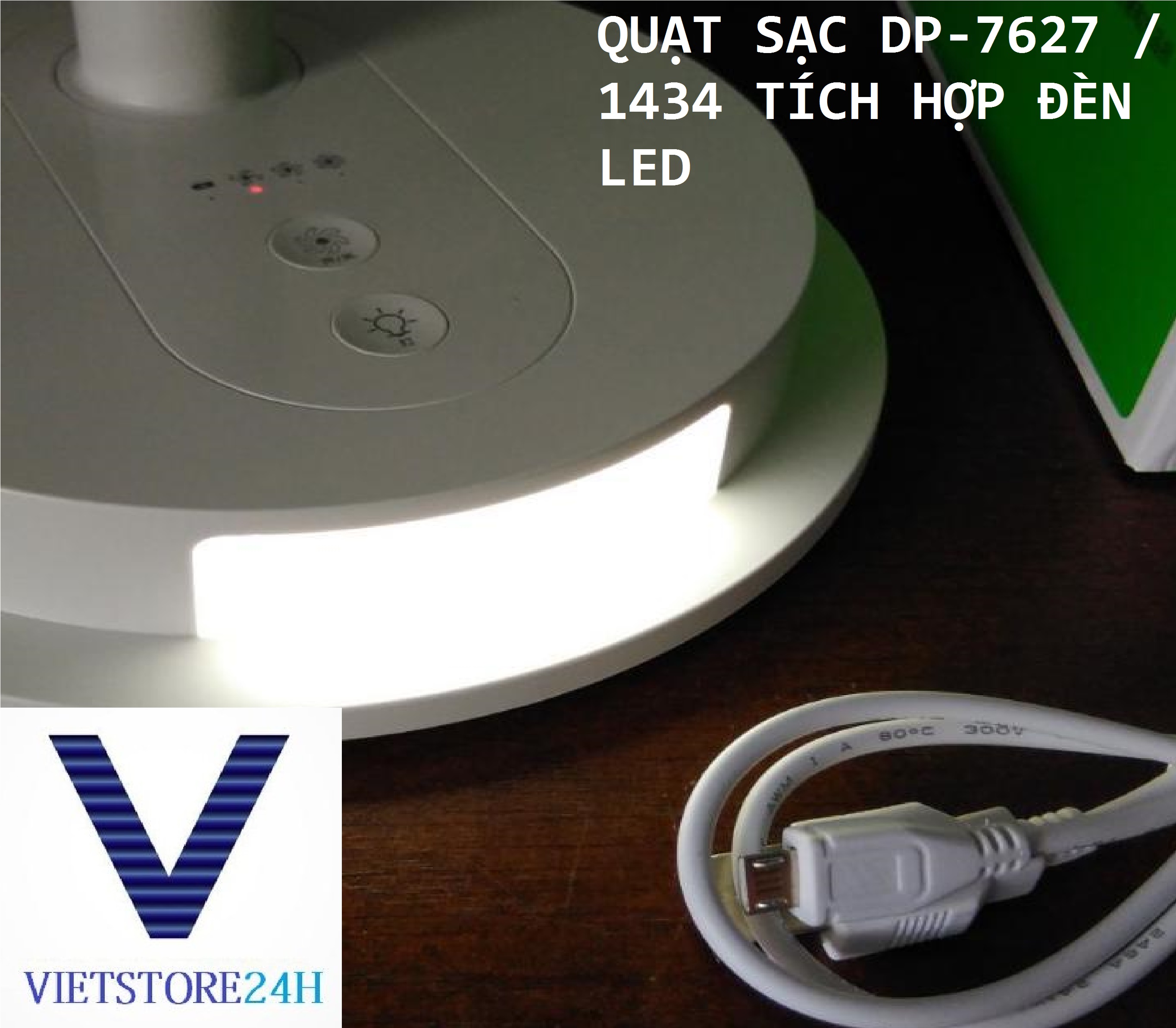 ✨Quạt Sạc DP-7627 / 1434 Tích Hợp Đèn Led VT - Hàng chính hãng