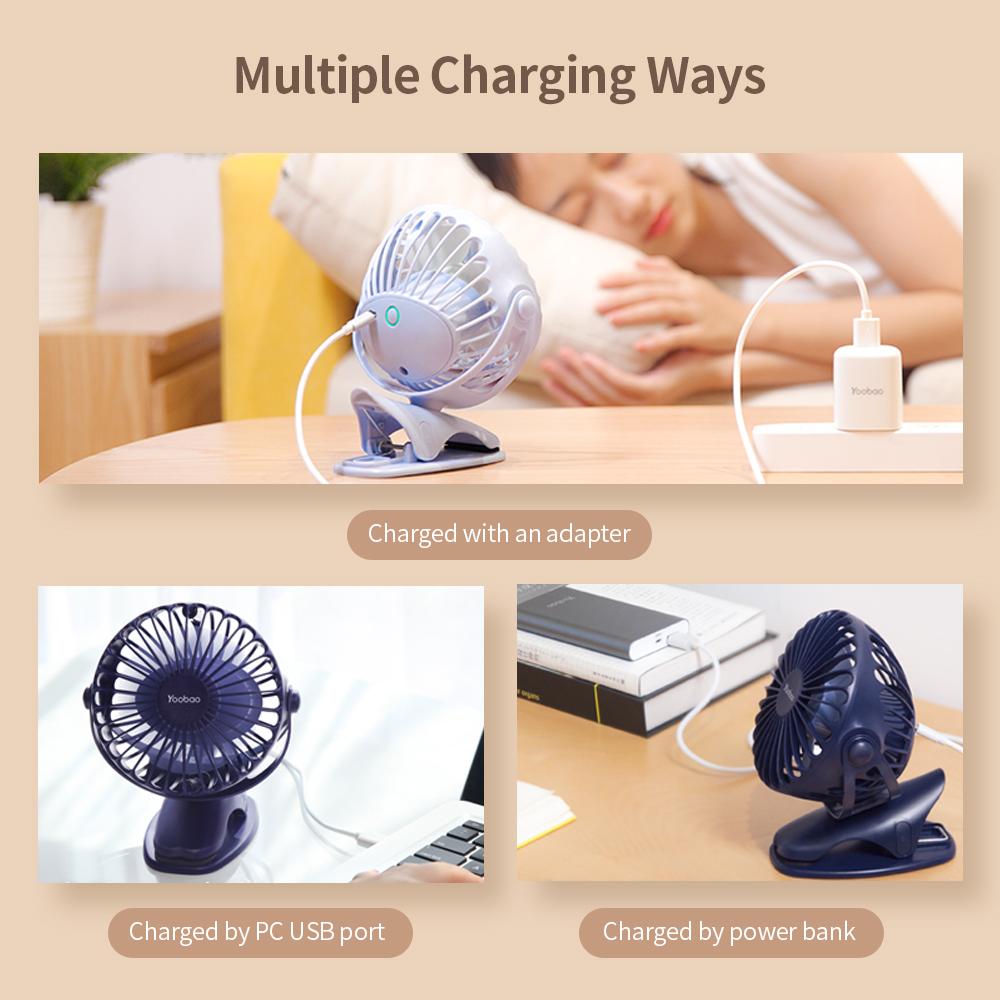 Quạt sạc mini để bàn YOOBAO F04 6400 mAh Xoay 720 độ đế kẹp đa năng Hàng chính hãng