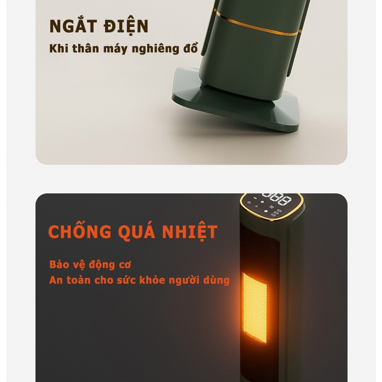 Quạt cây sưởi điện gốm PTC công suất 2000w điều khiển hẹn giờ lưới chống nhiệt an toàn cho trẻ nhỏ