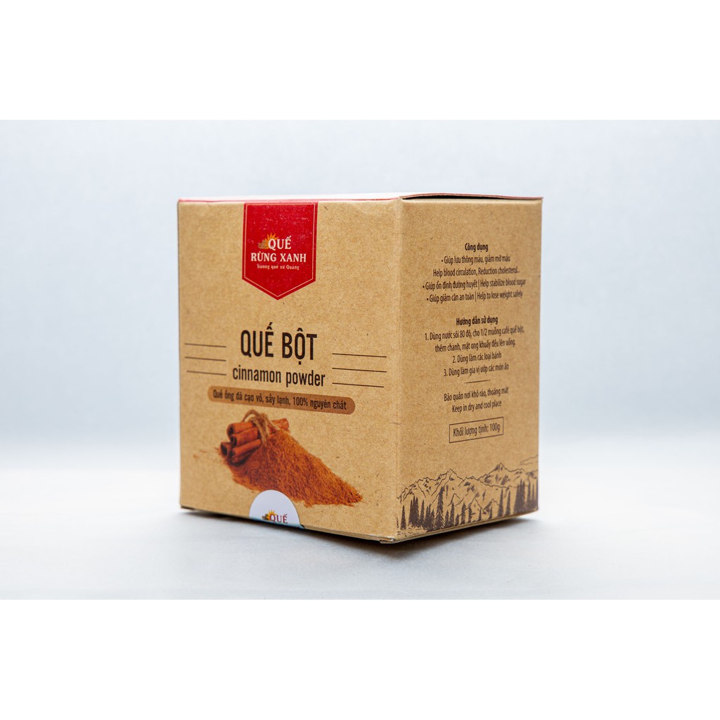 Mua tại TiktokBột quế tạo ra từ vỏ của cây quế khi đã xay nhuyễn, thơm và giữ được mùi hương lâu, được làm từ 100% bột quế nguyên chất từ rừng Trà Bồng Quảng Ngãi. Theo Y học cổ truyền, Quế được ví như Sâm trong Tứ Đại Danh Dược bao gồm: Sâm - Nhung - Quế - Phụ. Với truyền thống lâu đời trong lĩnh vực thuốc nam - Hơn 30 năm kinh nghiệm kinh doanh quế ở phố Đông y Sài Gòn, lần đầu tiên Quế Rừng Xanh mang giá trị cây quế đến với người tiêu dùng một cách tiện lợi nhất bằng cả tâm huyết của mình.
