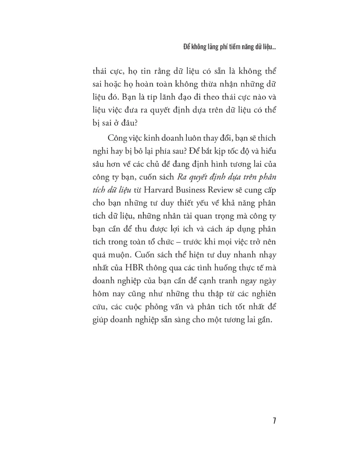 Được biên soạn bởi các chuyên gia từ Harvard Business Review, "Ra Quyết Định Dựa Trên Phân Tích Dữ Liệu" là một hướng dẫn toàn diện để doanh nghiệp biết cách tận dụng dữ liệu cho các quyết định kinh doanh quan trọng. Cuốn sách cung cấp quy trình và công cụ thiết yếu giúp doanh nghiệp: