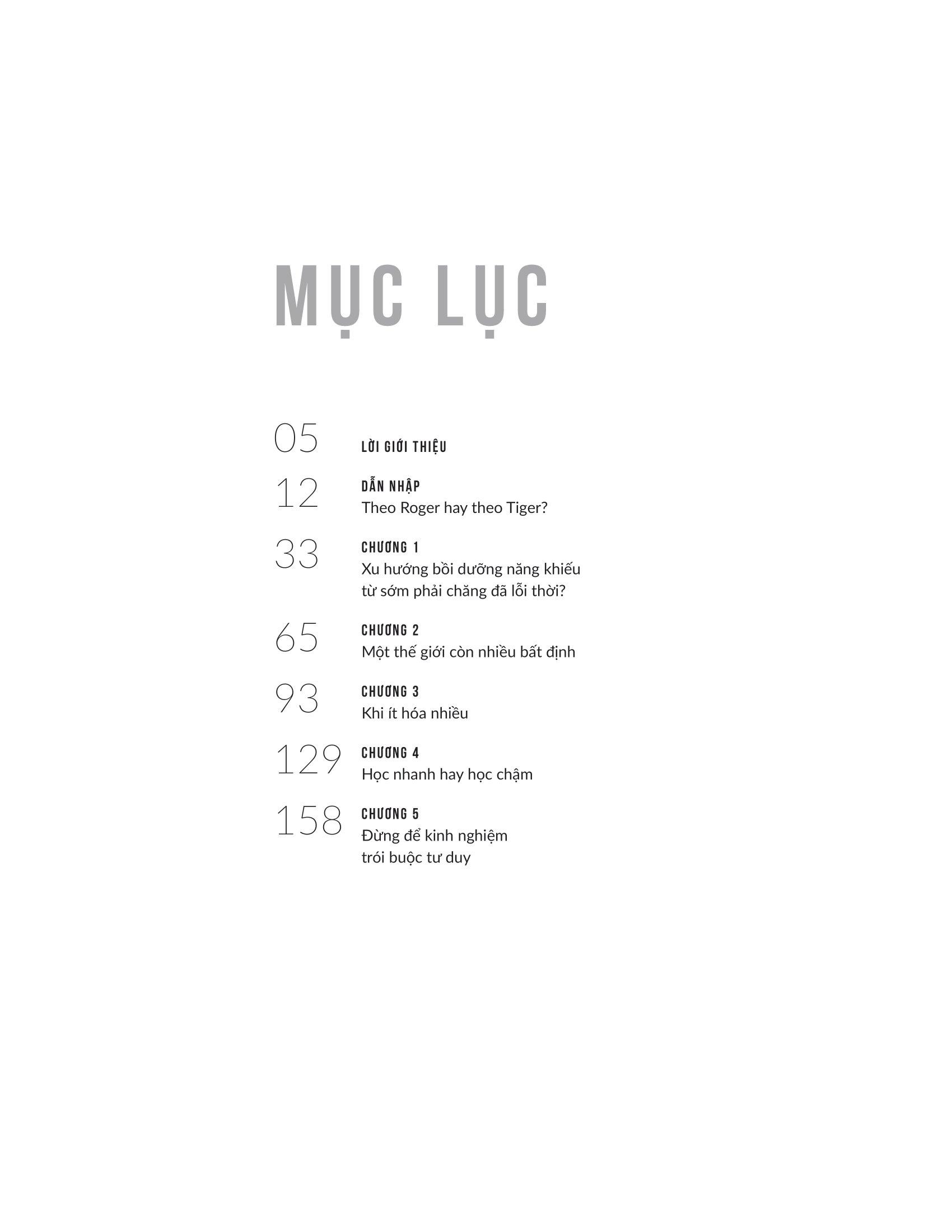 Rất nhiều chuyên gia lập luận rằng bất kỳ ai muốn phát triển một kỹ năng, chơi một nhạc cụ hoặc dẫn đầu lĩnh vực của m.ình đều nên bắt đầu sớm, tập trung cao độ và dành nhiều thời gian luyện tập có chủ ý nhất có thể. Nếu bạn vọc vạch hoặc trì hoãn, bạn sẽ không bao giờ bắt kịp những người dẫn đầu. Nhưng xem xét kỹ hơn nghiên cứu về những người có thành tích hàng đầu thế giới, từ vận động viên chuyên nghiệp đến người đoạt giải Nobel, tất cả cho thấy rằng chuyên môn hóa sớm là ngoại lệ, không phải là quy luật.