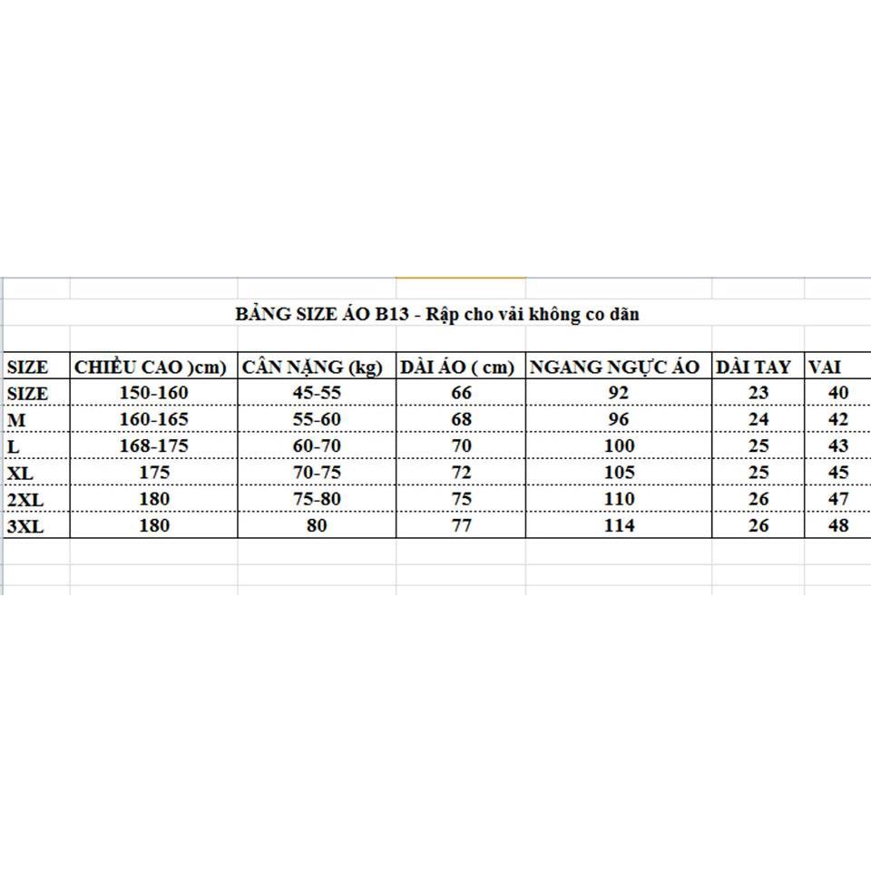 sz 3XL: dài áo 77cm; vai 48cm; ngực áo 114cm; dài tay 26 cm; 180cm; 80kg;