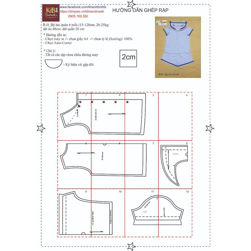 ✨Rập giấy bộ thun bâu lính thủy R10 cho bé 1 - 10 tuổi - bản vẽ
