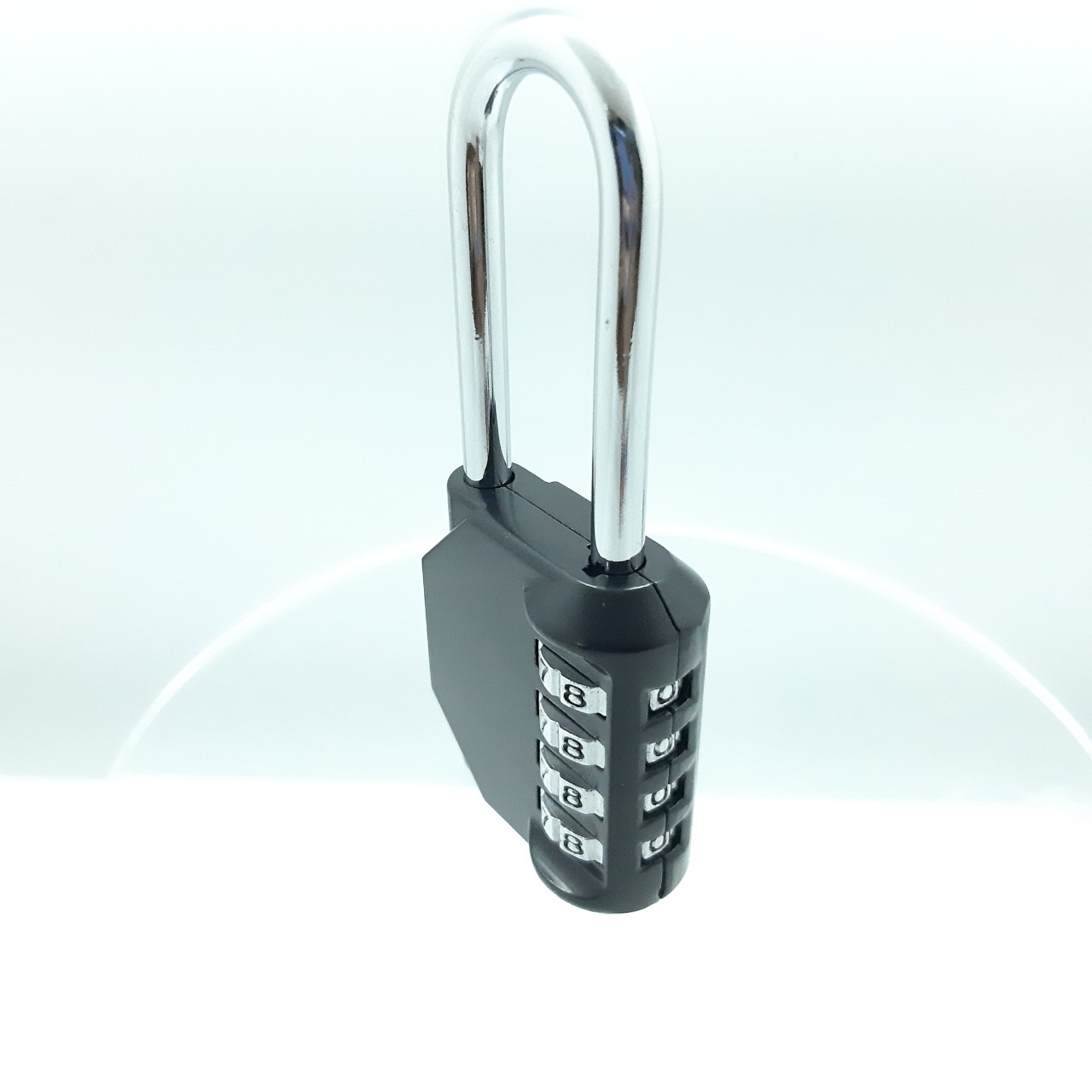 Càng khóa bằng thép, dài 52mm, bề ngang 20mm,Đường kính 6mm Thân khóa bằng hợp kim chống gỉ, Chế độ mở khóa bằng mật mã 4 số, có thể thiết lập đến 9999 mã khóa