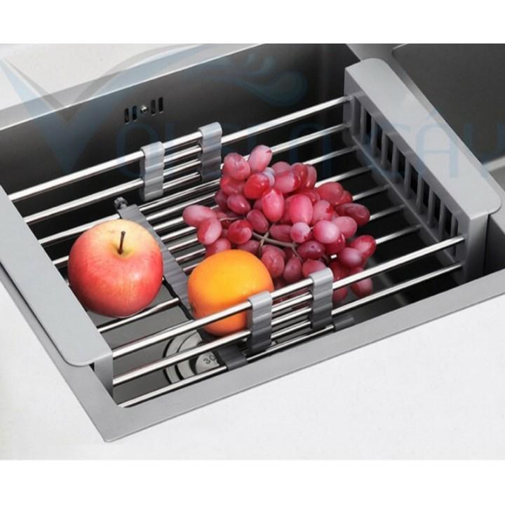 Rổ gác bồn rửa bát gấp gọn lúa mạch: – Bồn rửa rau, rửa bát thường có thiết kế 2 bồn khá tiện lợi nhưng có 1 điều khá là bất cập mà chắc chắn