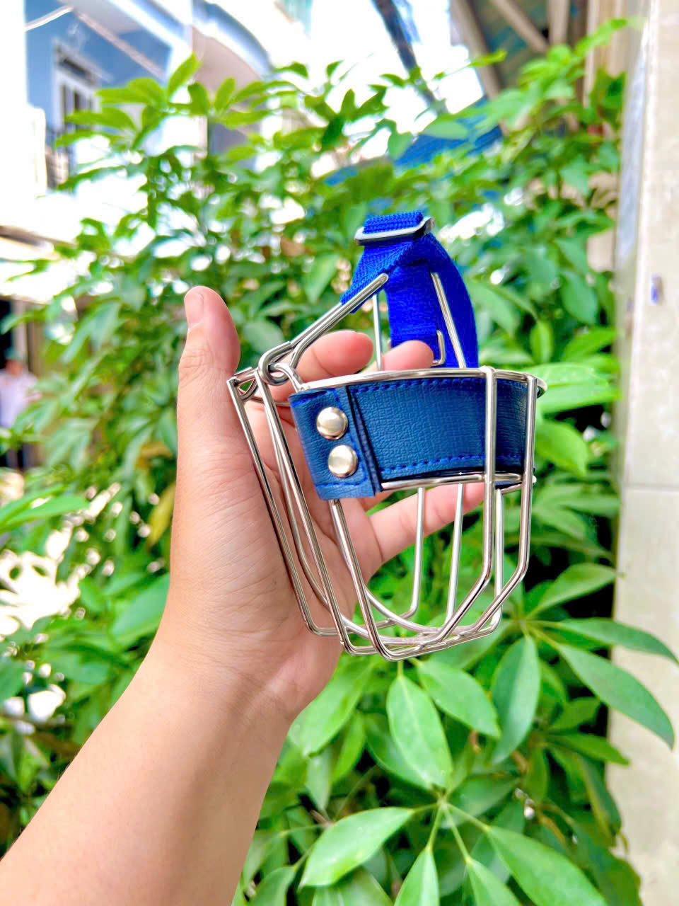 Thiết kế : Màu xanh và nâu trơn, rọ mõm inox