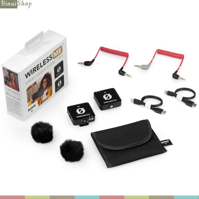 - Sách hướng dẫn THÔNG SỐ KỸ THUẬT Product name Rode Wireless ME Wireless Technology Digital 2.4 GHz Max Operating Range 328.1' / 100 m Mobile App Compatible Yes: Android & iOS App Name: Rode Central Functionality: Adjust Settings, Setup OS Compatibility macOS 10.15 or Later Windows 10 or Later iOS 14 or Later Android 11 Dynamic Range 100 dB Encryption 128-Bit Audio I/O 1 x 1/8" / 3.5 mm TRS Female Unbalanced Mic Output Frequency Response 20 Hz to 20 kHz Approx. Battery Life 7 Hours Dimensions 1.7 x 1.8 x 0.7" / 4.4 x 4.5 x 1.8 cm Weight 1.1 oz / 32 g Keyword: Rode Wireless ME, micro thu âm, micro cài áo, micro không dây rode, micro quay tiktok, micro làm podcast