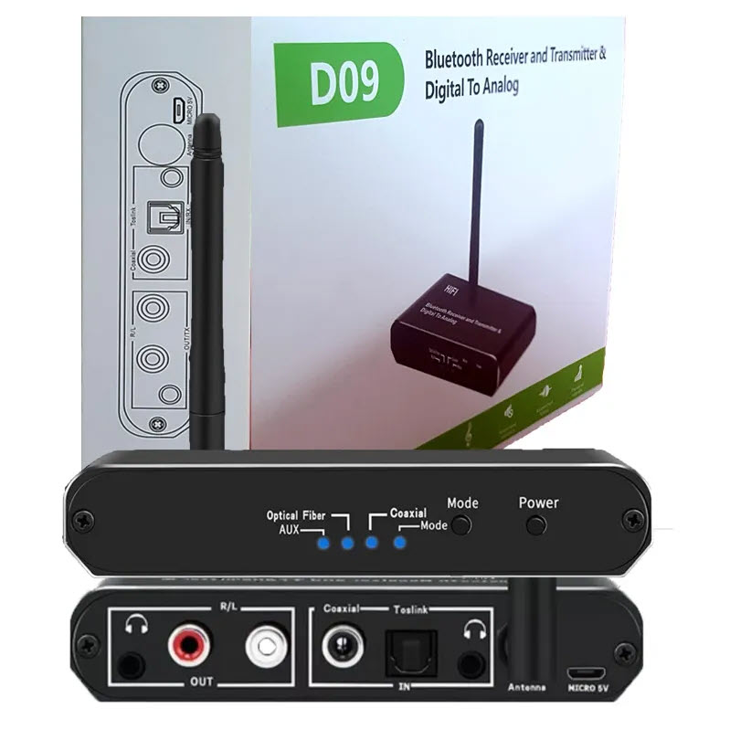Bộ Chuyển đổi âm thanh kĩ thuật số optical sang Analog D09 là thiết bị mới trên thị trường được nhà sản xuất tích hợp cả thu và phát Bluetooth Công nghệ 5.0 giúp truyền