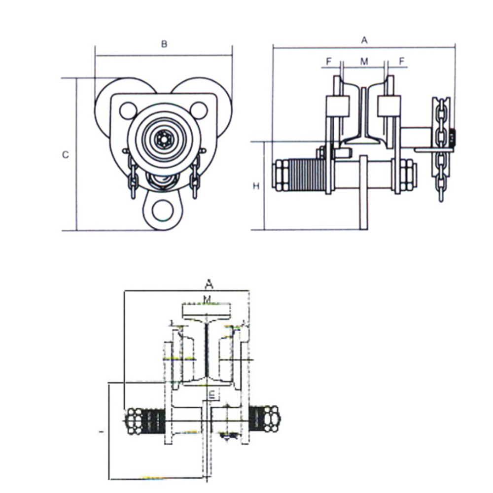 Thông số kĩ thuật rùa kéo tay, cụm móc treo palang 1 tấn, cụm treo pa lăng, móc treo plang có xích: