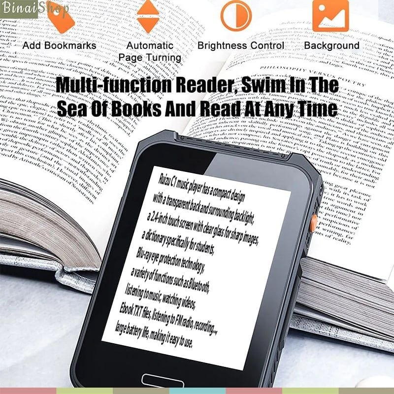 Mua tại Tiktok- Máy nghe nhạc Ruizu C3 thiết kế gọn nhẹ mặt lưng xuyên thấu và đèn nền xung quanh, màn hình cảm ứng 2.4 inch mặt kính trong mang lại hình ảnh sắc nét, từ điển dành riêng cho học sinh, công nghệ bảo vệ mắt Blu-ray, đa dạng chức năng như Bluetooth, nghe nhạc, xem videos, file Ebook TXT, nghe đài Fm, ghi âm..., thời lượng pin lớn, giúp dễ dàng sử dụng. TÍNH NĂNG CƠ BẢN