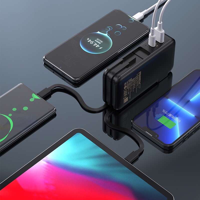 Sạc dự phòng kèm chân cắm gập và 2 cáp tiện lợi, không cần mang theo củ sạc cho sạc dự phòng, vừa là sạc, vừa là sạc dự phòng. Chân cắm gập gọn, cáp ẩn vào bên trong sạc tiện lợi, gọn gàng, không làm ảnh hưởng tới các thiết bị khác khi để cùng trong túi.
