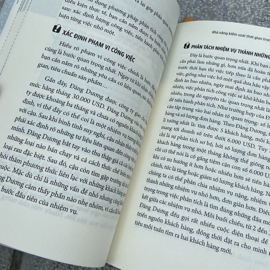 Sách: 1 Ngày Bằng 48 Giờ - Sổ tay Quản Lí Thời Gian Hiệu Quả: Bạn chưa đi làm, hoặc vừa mới chân ướt chân ráo bước vào chốn công sở, đã bao giờ bạn gặp phải tình huống như thế này: Khi cấp trên (hoặc thầy cô giáo) giao cho bạn một việc nào đó, ngay lập tức bạn ghi ghi chép chép rồi lao vào thực hiện. Chỉ tập trung làm cách nào để mau chóng hoàn thành nên bạn không nghĩ đến việc xác nhận lại với cấp trên (hoặc thầy cô) về mục tiêu chính của nhiệm vụ. Trong suốt quá trình thực hiện, bạn ít khi trao đổi với người khác, cũng không dành thời gian suy nghĩ, phân tích kĩ xem làm thế nào cho hiệu quả. Kết quả là khó khăn lắm mới kịp hoàn thành nhiệm vụ trước thời hạn, nhưng trái với mong đợi của bạn, những gì bạn nhận được rất có thể là thái độ không hài lòng của cấp trên (hoặc thầy cô). Rất ít người có thể hoàn thành nhiệm vụ một cách trọn vẹn ngay lần đầu tiên. Rốt cuộc vấn đề nằm ở đâu? Do bạn quản lí thời gian chưa tốt, hay phương pháp thực hiện chưa đúng? Trong cuốn sách này, tiến sĩ Bichines đưa ra “ba bước giải quyết vấn đề” đơn giản mà hiệu quả: 1, Nêu vấn đề (What) 2, Phân tích vấn đề (Why) 3, Giải quyết vấn đề (How) Phương pháp này còn có tác dụng giúp bạn rèn luyện tư duy logic. The đó, sau khi nhận nhiệm vụ, việc đầu tiên bạn cần làm không phải là bắt tay ngay vào việc mà dành chút thời gian để phân tích vấn đề, cũng như hiểu rõ những gì mình cần làm và phải làm ra sao. Nếu biết vấn dụng thành thạo ba bước giải quyết vấn đề trên, tin rằng mọi khó khăn bạn gặp phải đều có thể giải quyết dễ dàng.