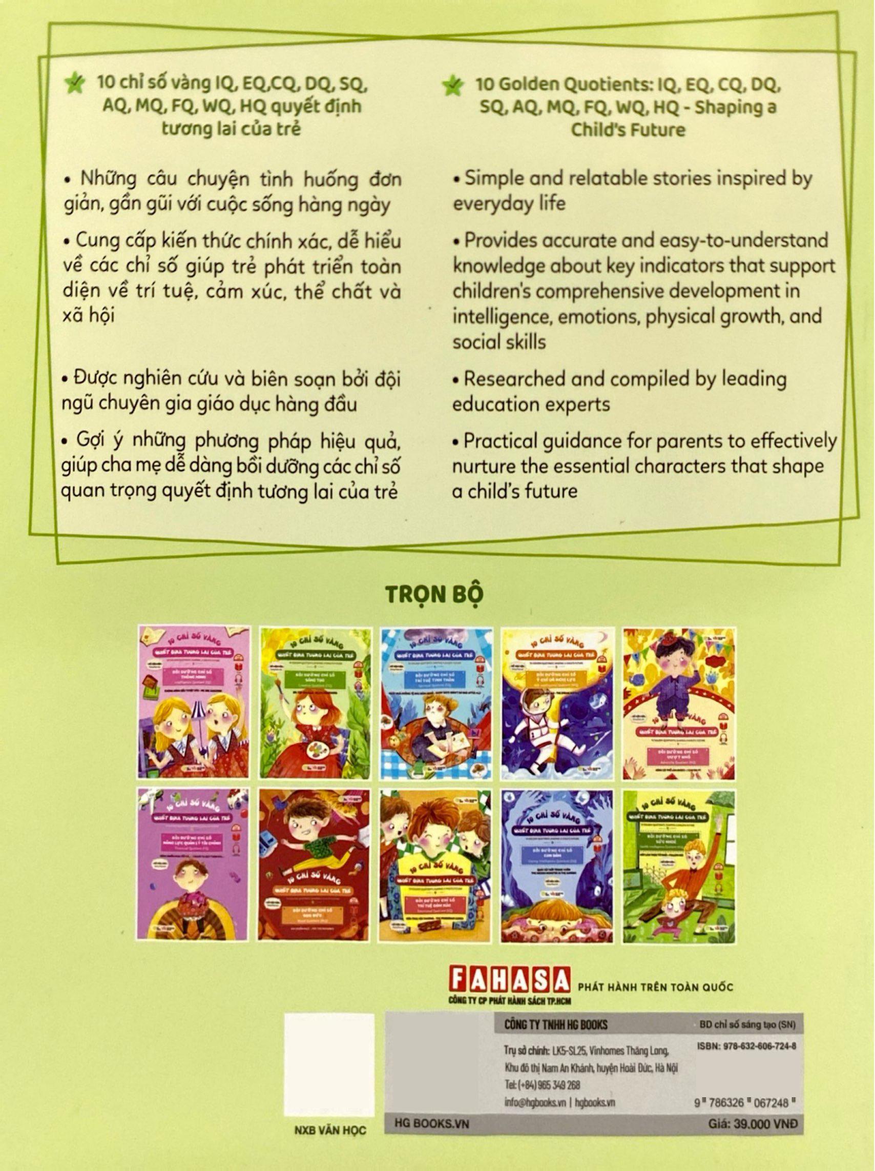 Cha mẹ có thể đã quen với chỉ số IQ (thông minh) và EQ (cảm xúc), nhưng thực tế còn nhiều chỉ số quan trọng khác quyết định sự phát triển toàn diện của trẻ. Bộ sách “10 Chỉ Số Vàng Quyết Định Tương Lai Của Trẻ” là công cụ giáo dục hiện đại, giúp bé nuôi dưỡng 10 chỉ số then chốt để tự tin vững bước trong cuộc sống.