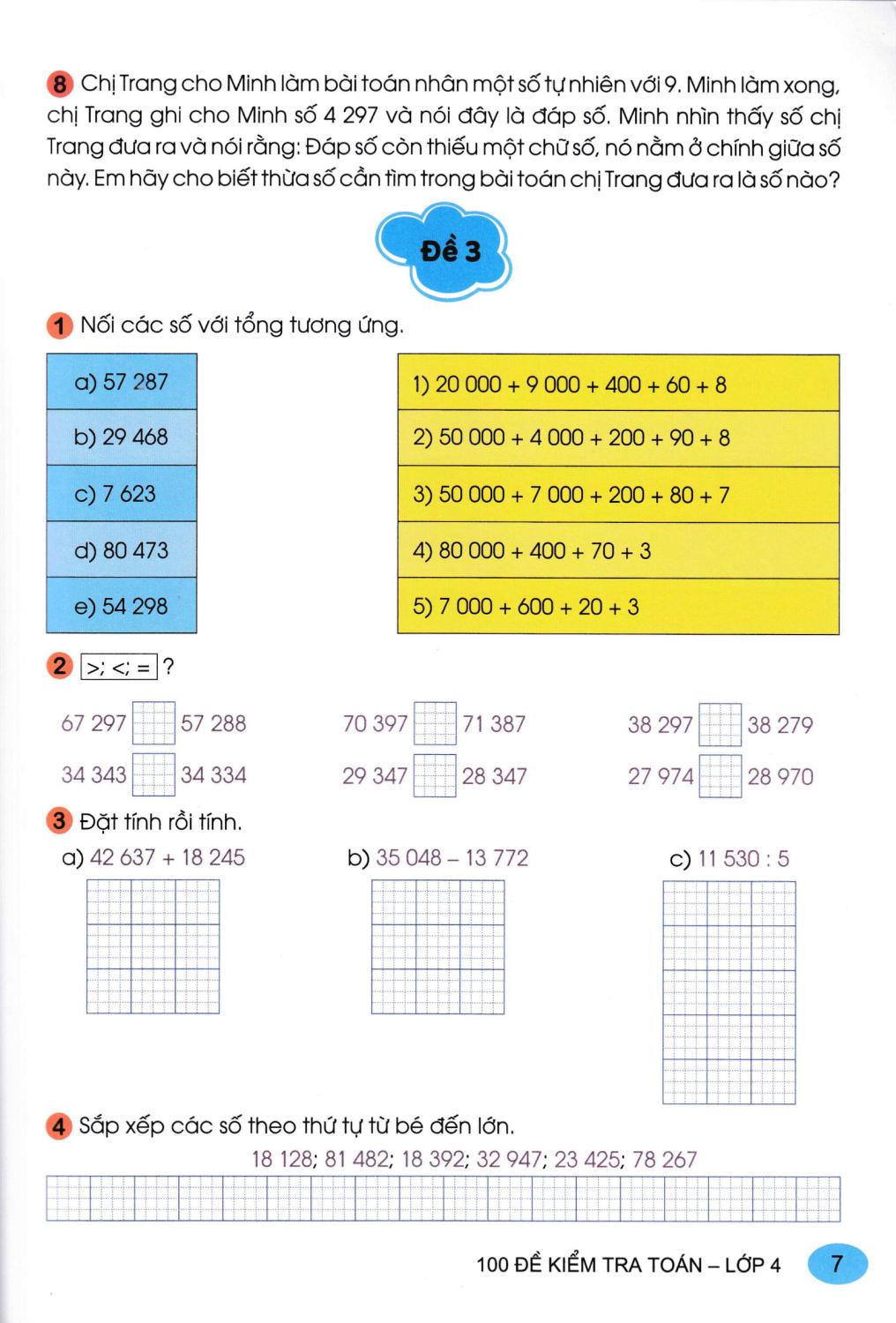 ✨Sách - 100 Đề Kiểm Tra Toán 4