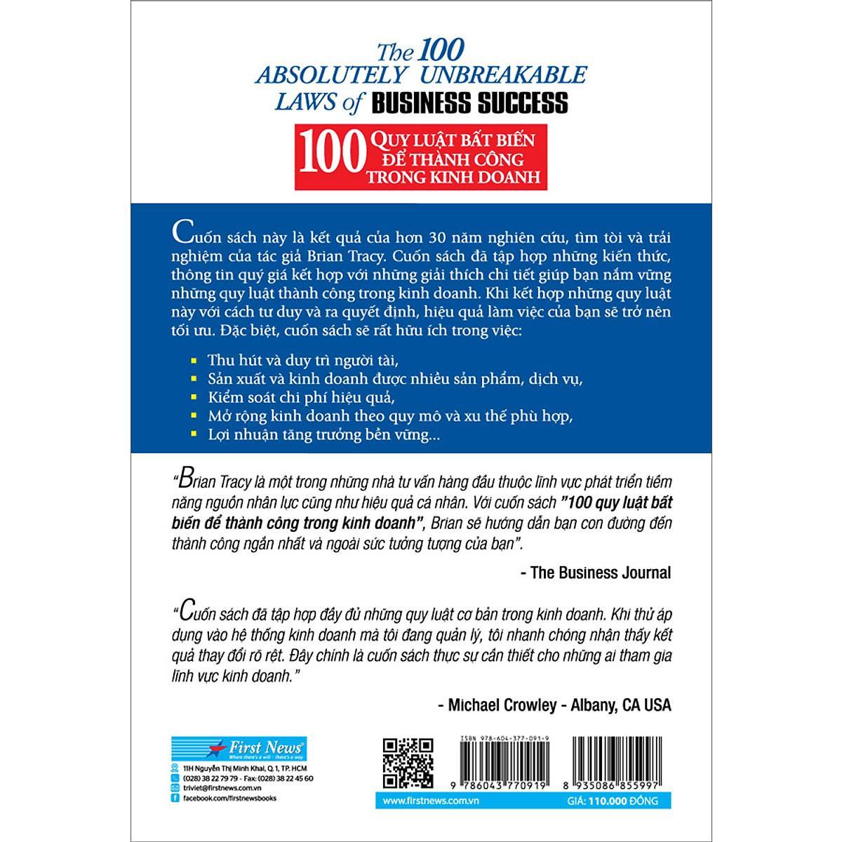 Cuốn sách này là kết quả của hơn 30 nghiên cứu, tìm tòi và trải nghiệm của tác giả Brian Tracy. Cuốn sách đã tập hợp những kiến thức, thông tin quý giá kết hợp với những giải thích chi tiết giúp bạn nắm vững những quy luật thành công trong kinh doanh. Khi kết hợp những quy luật này với cách tư duy và ra quyết định, hiệu quả làm việc của bạn sẽ trở nên tối ưu. Đặc biệt, cuốn sách sẽ rất hữu ích trong việc:
