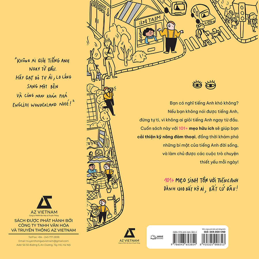 101+ MẸO SINH TỒN VỚI TIẾNG ANH Tiếng Anh len lỏi trong mọi ngóc ngách của cuộc sống thường nhật, trong khi bạn vẫn nghĩ tiếng Anh khó? Khi bắt đầu, nếu bạn chưa nói được tiếng Anh, đừng tự ti, vì không ai giỏi tiếng Anh ngay từ đầu. Nhưng chính người bản xứ nói tiếng Anh chỉ dùng các từ quen thuộc trong cuộc sống hằng ngày, tương tự như của chúng ta. Vậy nên cách học tiếng Anh hiệu quả nhất chính là sử dụng những từ ngữ gần gũi trong cuộc sống. Và tất cả nhiệm vụ trong 101+ MẸO SINH TỒN VỚI TIẾNG ANH đều rất thông dụng, với hơn một trăm tình huống hội thoại gần gũi thực tế như tìm nhà thuê, đi xe buýt, đi máy bay, giao tiếp công sở, đi ăn nhà hàng, du lịch, tham gia các hoạt động xã hội,… sẽ giúp bạn cải thiện trình độ tiếng Anh và làm chủ kỹ năng đàm thoại bằng tiếng Anh; đồng thời khám phá những bí mật của ngôn ngữ này trong đời sống. 101+ MẸO SINH TỒN VỚI TIẾNG ANH sẽ dành cho bất cứ ai, ở bất cứ đâu! Sách được phát hành bởi thương hiệu sách trẻ Wavebooks với sứ mệnh trở thành người bạn đồng hành tin cậy cho quá trình phát triển kỹ năng và tâm hồn người Việt trẻ.