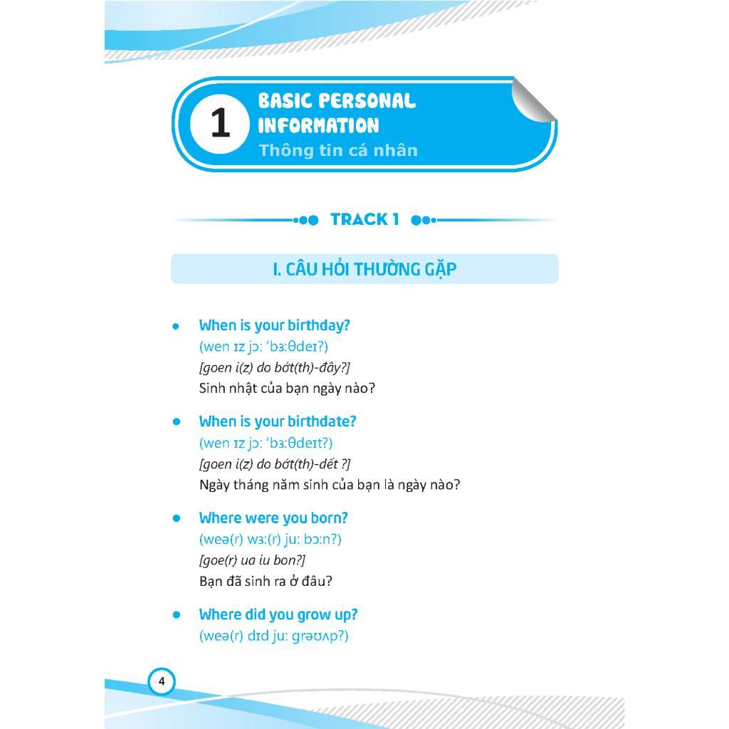 - Nội dung cuốn sách được chia thành từng chủ đề thông dụng hàng ngày, có phiên âm quốc tế, phiên âm tiếng Việt và kèm theo đĩa CD để các bạn có thể thực hành.