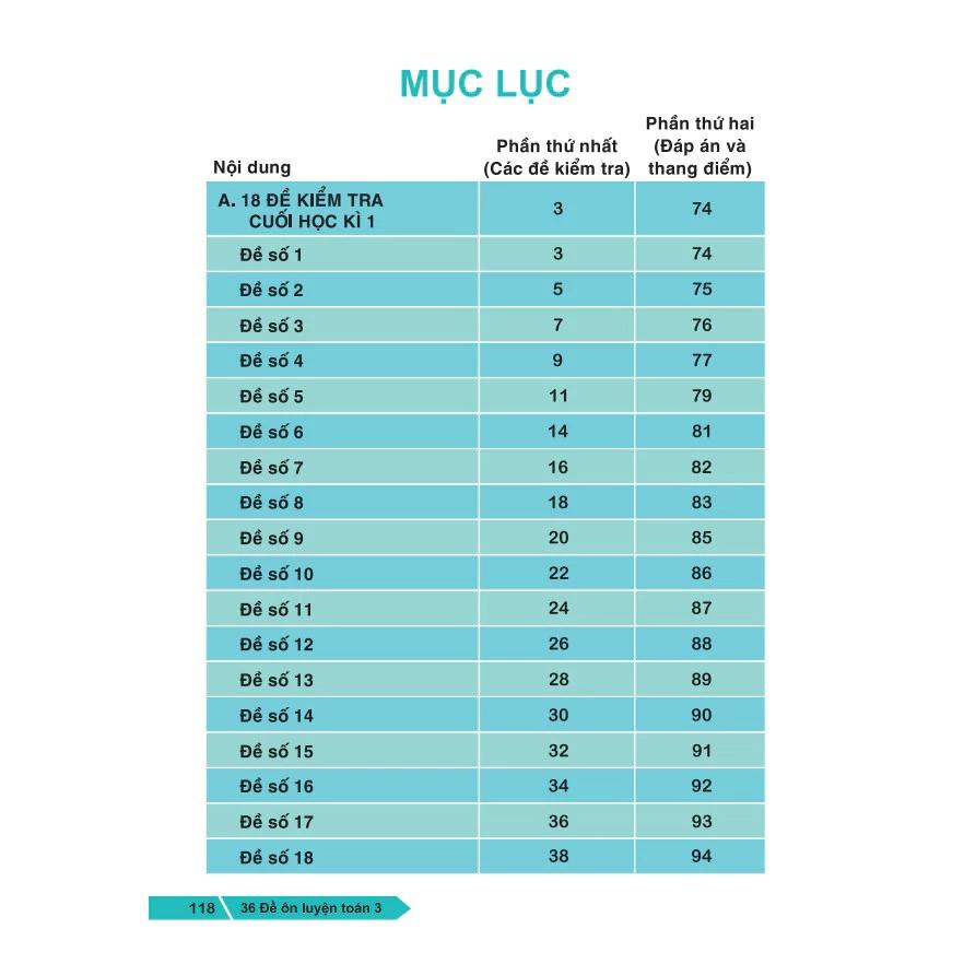 từ lớp 2 đến lớp 5. Mỗi lớp gồm 18 đề kiểm tra cuối học kì 1 và 18 để kiểm tra cuối học kì 2 theo Chương trình môn Toán trong Chương trình giáo dục phổ thông 2018.