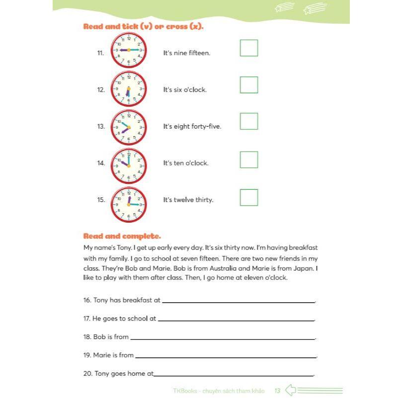 *Bám sát chương trình học: Cuốn sách được biên soạn theo đúng trình tự các bài học trong sách giáo khoa Tiếng Anh lớp 4, đảm bảo học sinh có thể theo dõi và ôn luyện một cách thuận tiện.