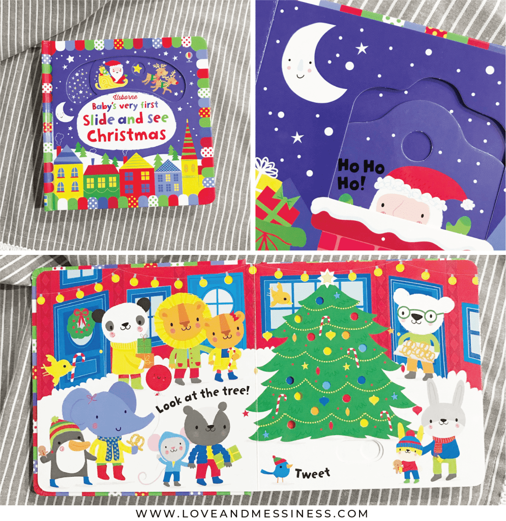 Các em bé sẽ thích nhìn những bức tranh tươi sáng trong cuốn sách thú vị này và khi chúng di chuyển các thanh trượt, nhìn thấy cây thông Noel rực rỡ ánh đèn màu, tìm ai đang trốn trong ngôi nhà bánh gừng và bắt ông già Noel khi ông ấy trượt xuống ống khói. Có rất nhiều điều để nói trên mỗi trang và móng tay cũng như hình cắt để khám phá.