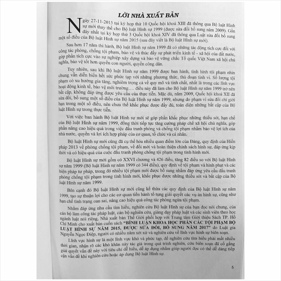 Giới thiệu sách: BÌNH LUẬN KHOA HỌC PHẦN CÁC TỘI PHẠM BỘ LUẬT HÌNH SỰ NĂM 2015 đã được sửa đổi năm 2017 BÌNH LUẬN KHOA HỌC PHẦN CÁC TỘI PHẠM BỘ LUẬT HÌNH SỰ NĂM