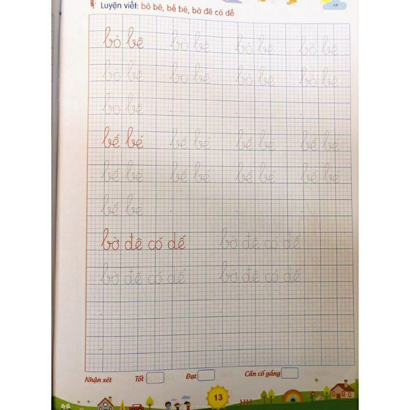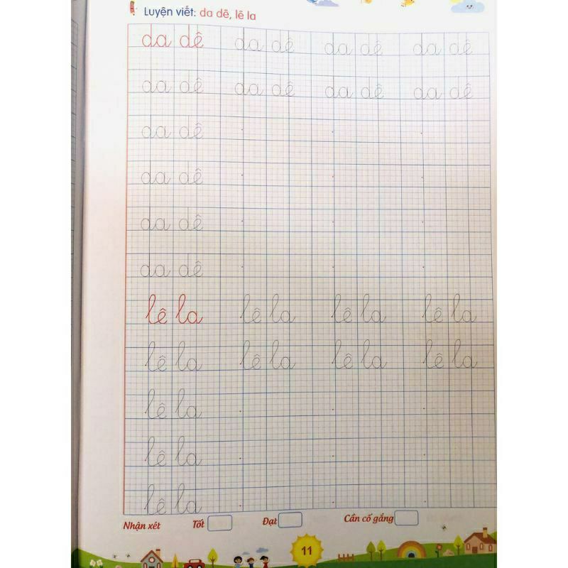 Mua tại TiktokGIỚI THIỆU SÁCH LUYỆN VIẾT HỖ TRỢ BÉ TRONG QUÁ TRÌNH TẬP VIẾT (Bộ 3 quyển) ❖ Vở Luyện Viết gồm 48 trang, khổ to 19x26.5cm, in màu trên giấy viết Bãi Bằng loại dày chống lóa. Với nội dung đầy đủ từ Luyện viết các nét cơ bản, chữ số, chữ cái và chữ ghép. Bố cục 1 trang bài học, 1 trang luyện tập với phương pháp luyện viết từ nét đến chữ sẽ giúp cho bé dễ dàng nắm bắt cách thức viết đúng, viết đẹp. Đây là phương pháp luyện viết hiệu quả nhất, được nghiên cứu và triển khai thử nghiệm tới hàng triệu trẻ em trong vài năm qua và đạt kết quả ngoài mong đợi. ❖ Luyện Viết - Hành trang cho bé tự tin vào lớp 1 (Quyển 1+2+3)