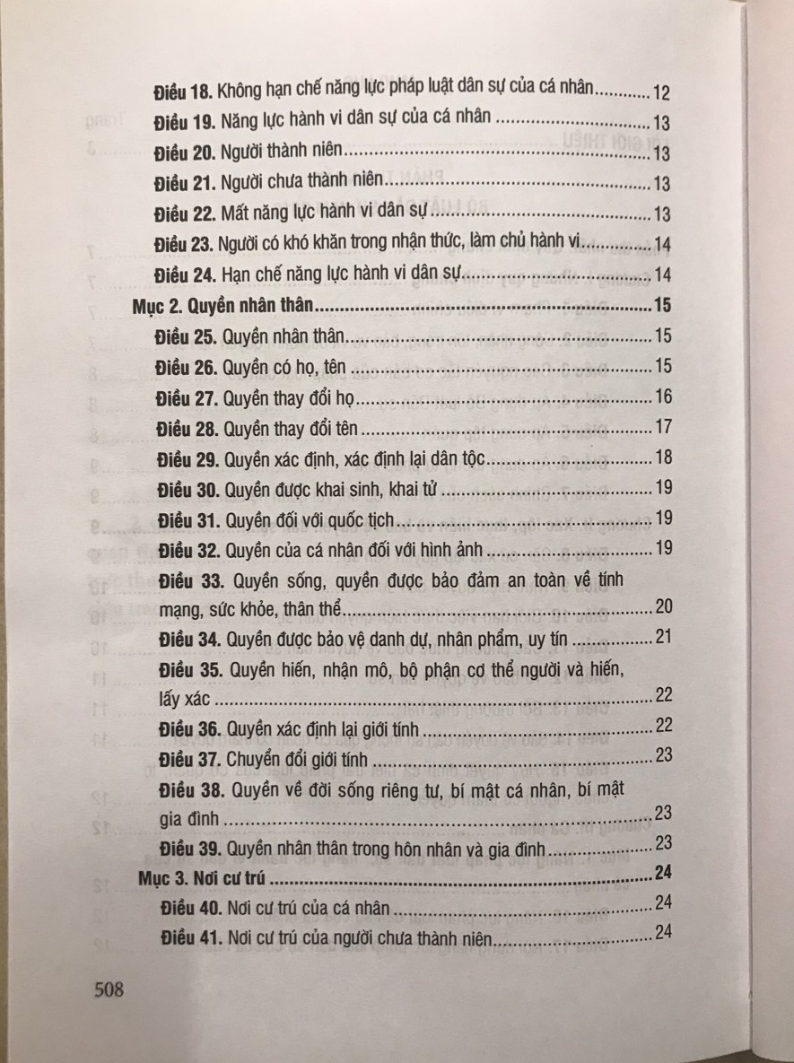 Bộ Luật Dân Sự Nước Cộng Hòa Xã Hội Chủ Nghĩa Việt Nam Nội dung sách bao gồm các văn bản quy phạm pháp luật quy định về địa vị pháp lý, chuẩn mực pháp