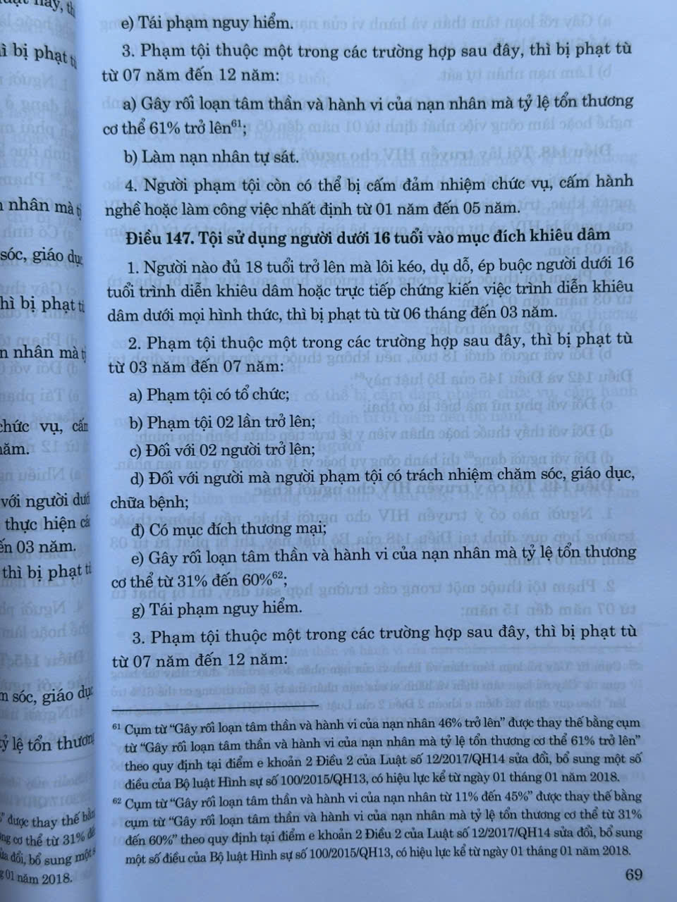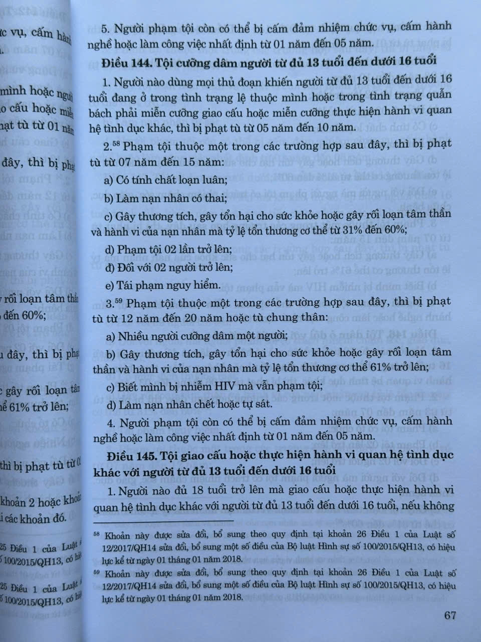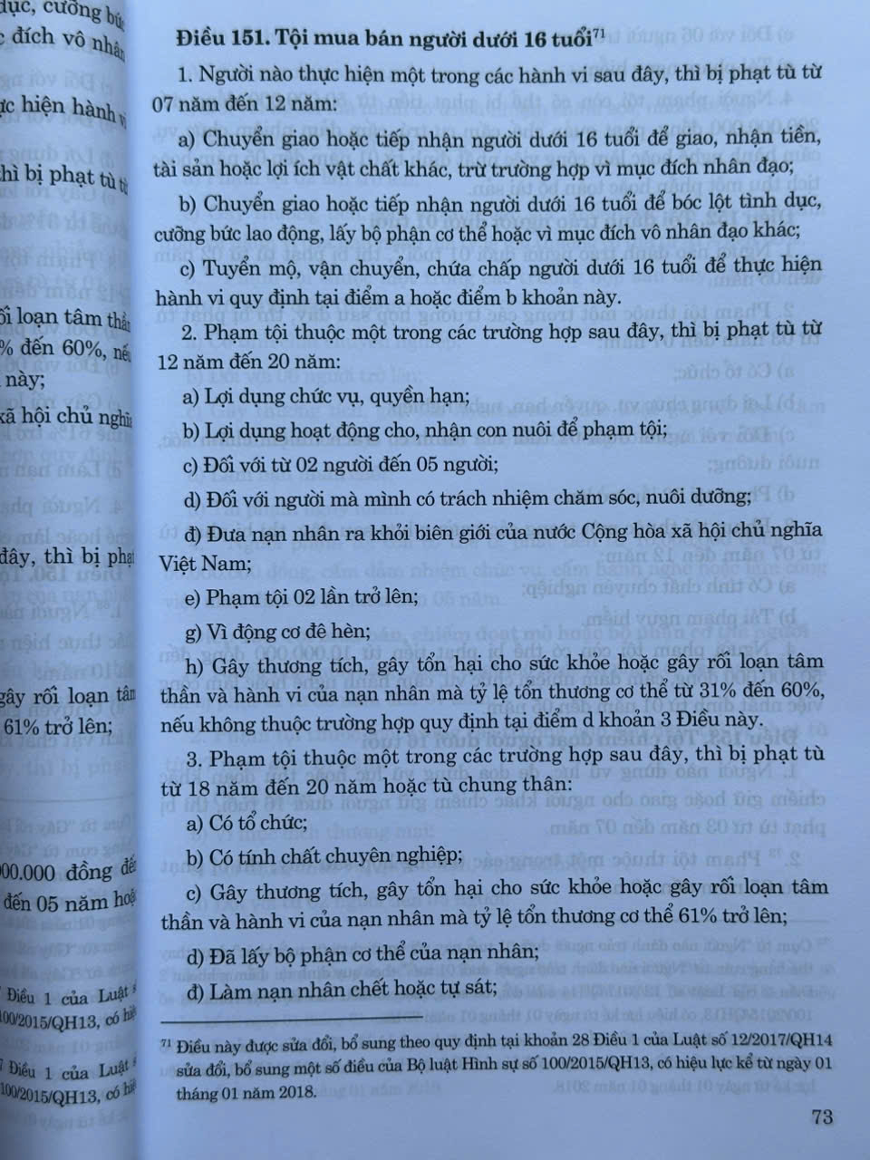 - Luật số 12/2017/QH14 ngày 20 tháng 6 năm 2017 của Quốc hội sửa đổi, bổ sung một số điều của Bộ luật Hình sự số 100/2015/QH13, có hiệu lực kể từ ngày 01 tháng 01 năm 2018;