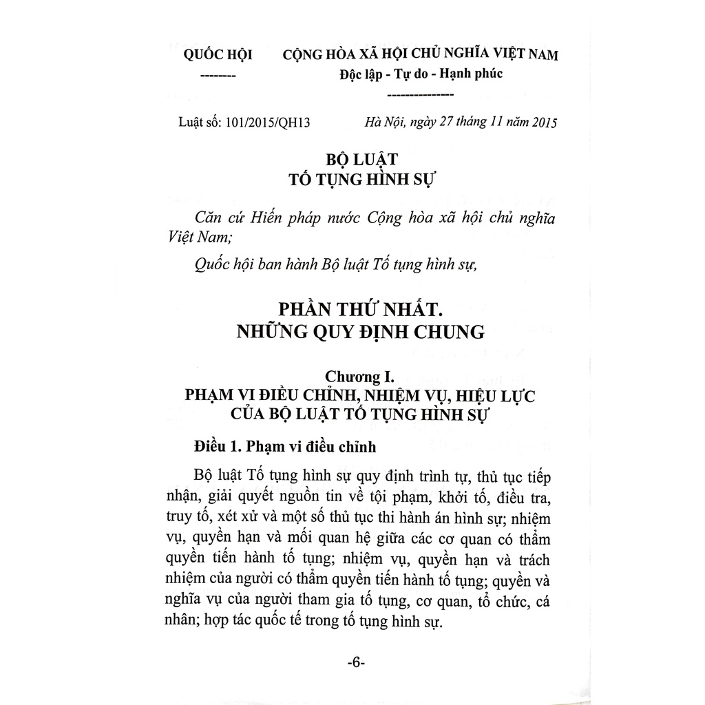 Bình Luận Khoa Học Bộ Luật Tố Tụng Hình Sự Năm 2015 (Tái Bản) Bộ luật tố tụng hình sự 2015 được Quốc hội thông qua ngày 27-11-2015, có hiệu lực từ ngày 1-1-2018. Việc