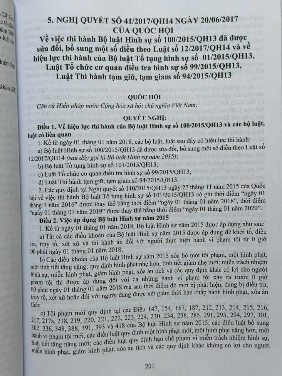 Bộ Luật Hình Sự 2015 (Sửa Đổi, Năm 2017) Bộ Luật Tố Tụng Hình Sự Luật Tổ Chức Cơ Quan Điều Tra Hình Sự Luật Thi Hành Tạm Giữ Tạm Giam Ngày 10-7-2017 văn phòng
