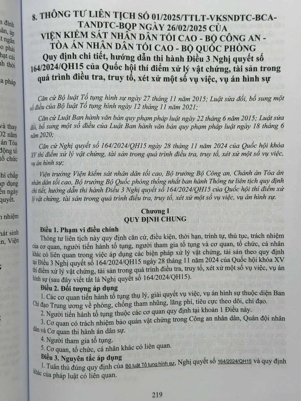 – Thông tư liên tịch 05/2025/TTLT-BCA-BQP-VKSNDTC-TANDTC ngày 01/7/2025 Quy định về phối hợp giữa các cơ quan tiến hành tố tụng trong điều tra, truy tố, xét xử vắng mặt bị can, bị cáo;