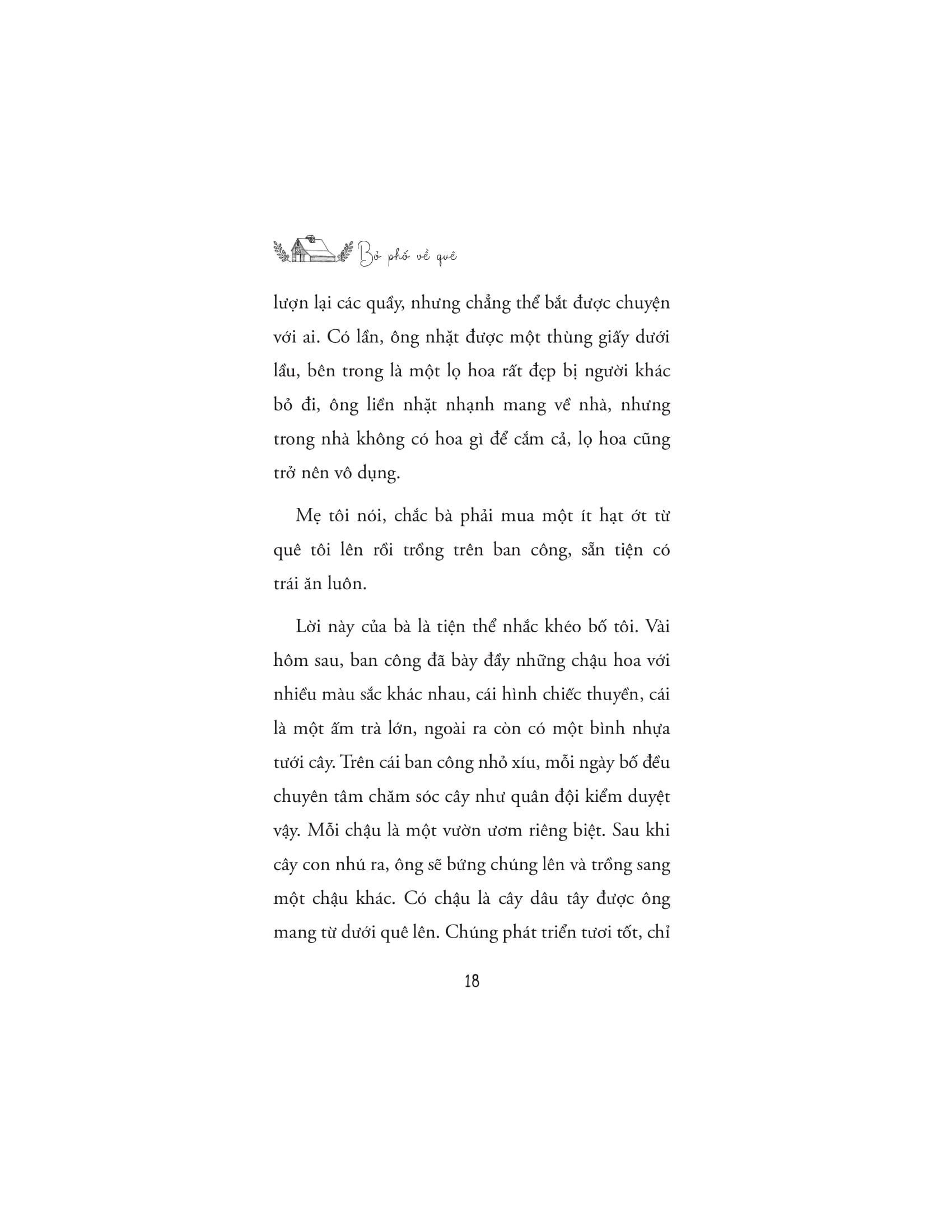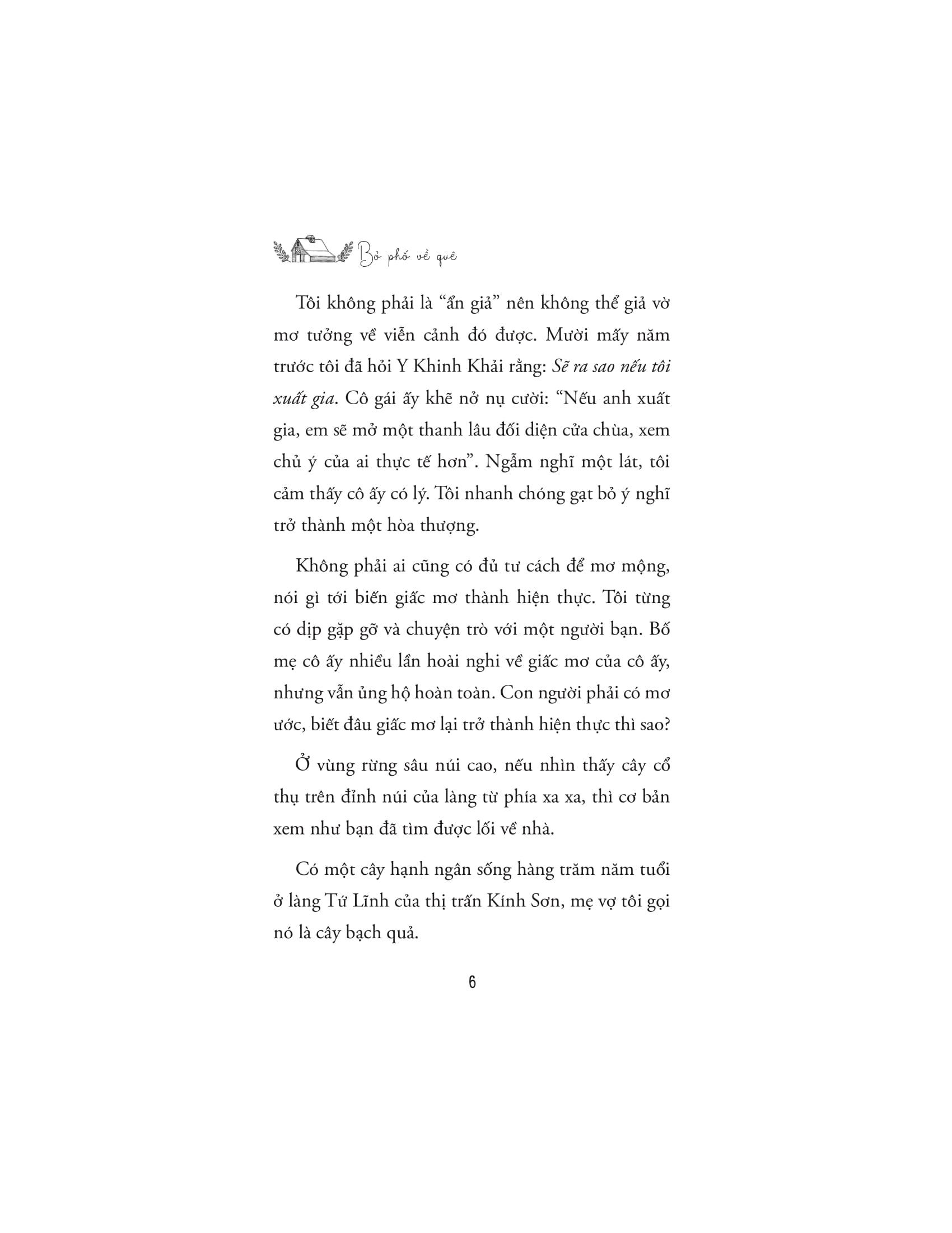 Cuốn sách không chỉ là một lời nhắn nhủ về việc tìm lại giá trị bản thân, mà còn là tiếng nói đồng cảm với những bạn trẻ hiện đại đang khát khao "bỏ phố" để tìm kiếm sự cân bằng và ý nghĩa mới trong cuộc sống. Thông qua câu chuyện của m.ình, Chu Tử Nhất mang đến một góc nhìn đầy cảm hứng về lối sống gần gũi với thiên nhiên: một cuộc sống chậm rãi, nhưng sâu sắc và giàu kết nối. Anh học cách hòa m.ình vào nhịp sống bình dị của nông thôn, xây dựng mối quan hệ chân thành với những người dân bản địa, và từ đó, khám phá cách biến cuộc sống ở quê nhà không chỉ là sự tồn tại, mà còn là sự thăng hoa đầy ý nghĩa.