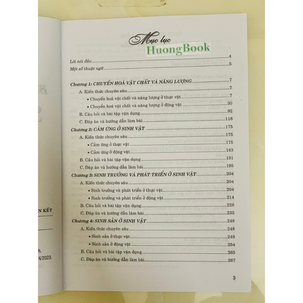 C. ĐÁP ÁN VÀ HƯỚNG DẪN LÀM BÀI: là phần giúp bạn đọc tự kiểm tra và đánh giá. Chúng tôi tin tưởng rằng, cuốn sách không chỉ là một tài liệu tham khảo hữu ích giúp học sinh tự học mà nó còn là một tư liệu quý để giáo viên tham khảo sử dụng trong công tác bồi dưỡng học sinh giỏi và giảng dạy các lớp chuyên Sinh. Mặc dù tác giả rất tâm huyết và dành nhiều thời gian để biên soạn, song do những hạn chế khách quan và chủ quan nên cuốn sách không tránh khỏi còn có thiếu sót nhất định. Tác giả rất mong nhận được các ý kiến góp ý để trong lần tái bản sau cuốn sách được hoàn thiện hơn.