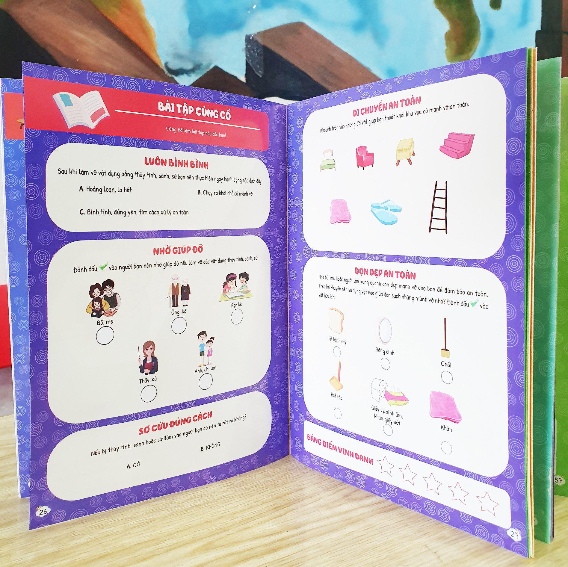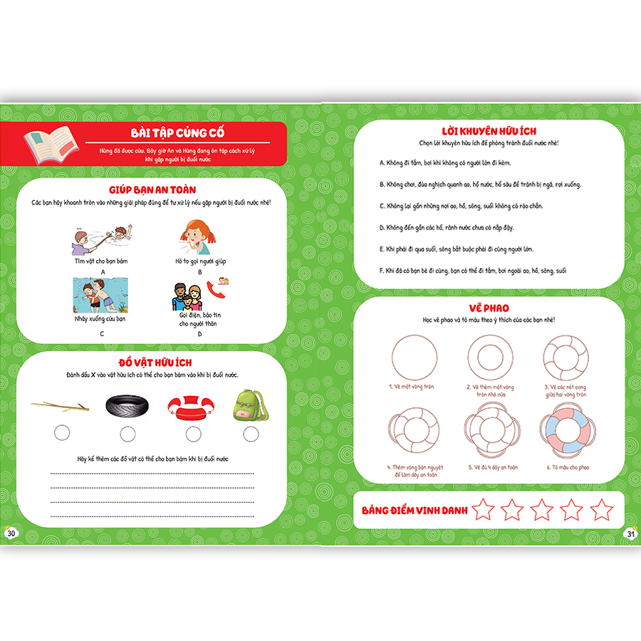 Sách "Cẩm nang hướng dẫn trẻ xử lý tình huống khi gặp nạn" Mục đích cuốn sách Với 20 tình huống này con sẽ biết cách tự bảo vệ mình và xử lý tốt những tình huống khác trong cuộc sống. Sách cẩm nang sẽ trở thành người bạn thân thiết với các bạn học sinh trong độ tuổi từ 4-10 tuổi Nội dung cuốn sách Cuốn sách đưa ra các tình huống nguy hiểm thường gặp trong cuộc sống của trẻ cùng với giải pháp xử lý tối ưu thể hiện qua sơ đồ MINDMAP. Trong sơ đồ, các hướng xử lý tối ưu được đánh số thứ tự theo mức độ ưu tiên, hướng xử lý không đúng sẽ có phần ghi chú hậu quả gặp phải. Mỗi tình huống được thiết kế sinh động với các hình ảnh, màu sắc trực quan, dễ hiểu. Sau mỗi tình huống là phần bài tập củng cố với nhiều dạng bài phong phú giúp trẻ ghi nhớ các hướng giải quyết một cách nhanh chóng. Sách cẩm nang với 20 tình huống bao gồm: