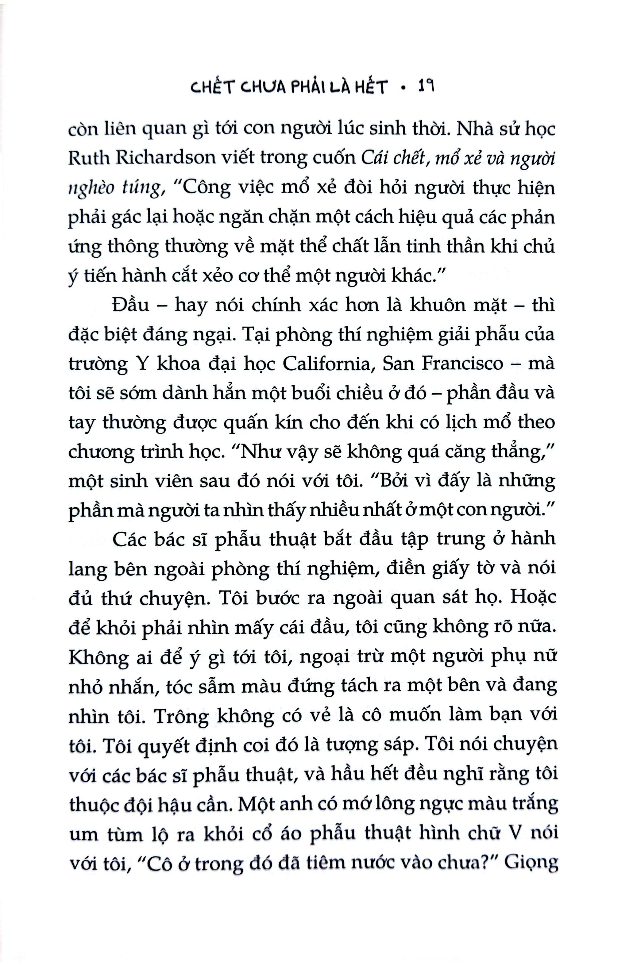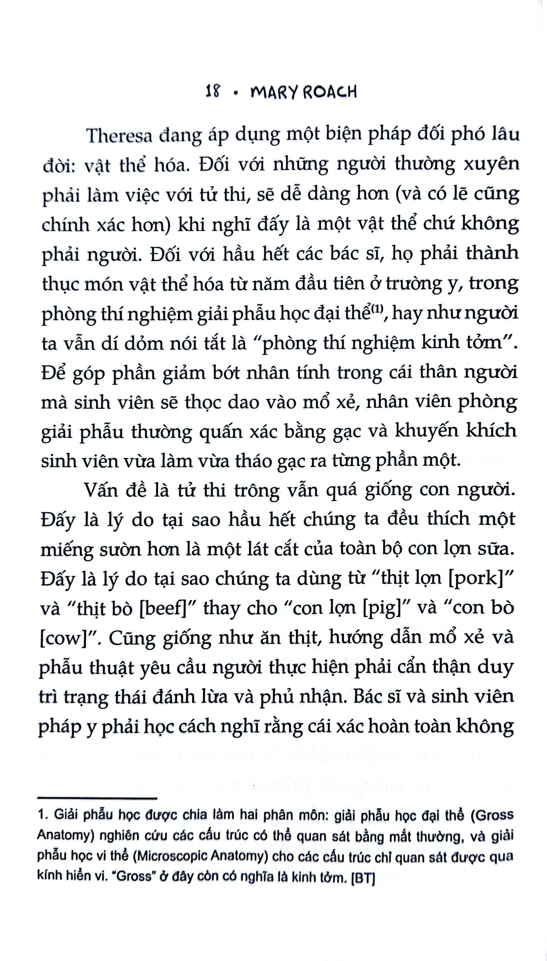 Bằng giọng văn dí dỏm đặc trưng mà không hề thiếu vắng thái độ tôn trọng, Mary Roach đã khai thác một đề tài vốn còn nhiều định kiến và kiêng kỵ, từ đó mở ra không chỉ những bí ẩn hậu trường mà còn xem xét những vấn đề đạo đức xoay quanh công việc nghiên cứu xác chết. Hơn thế nữa, cuốn sách còn là bản tụng ca về những con người đã cống hiến cho khoa học, những siêu anh hùng thầm lặng của chúng ta.