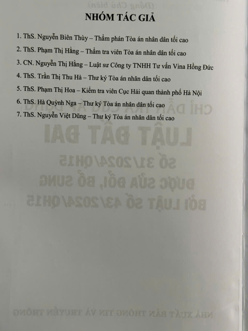 Chỉ dẫn tra cứu áp dụng luật đất đai số 31/2024/QH15 được sửa đổi, bổ sung bởi luật số 43/2024/QH15 Tác giả: Ths. Nguyễn Biên Thùy và ThS. Phạm Thị Hằng (đồng chủ biên) Nhà