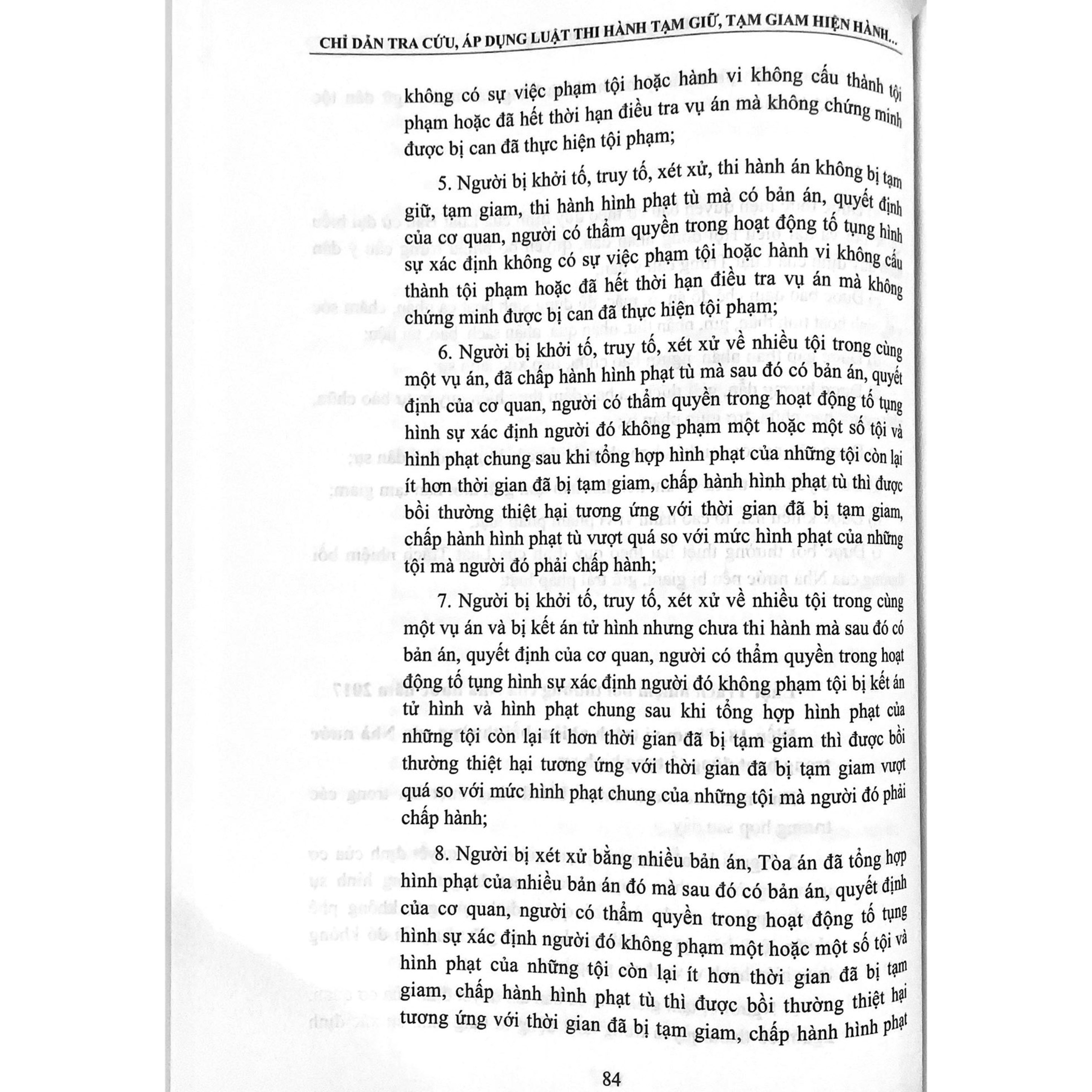 Để góp phần hiện thực hóa Hiến pháp năm 2013, Nhóm tác giả đã biên soạn cuốn "Chỉ dẫn tra cứu, áp dụng luật thi hành tạm giữ, tạm giam hiện hành góp phần thực thiện nguyên tắc hiến định "công nhận, tôn trọng, bảo vệ và bảo đảm quyền con người" ".Cuốn sách tập hợp đầy đủ văn bản pháp luật đang có hiệu lực về tạm giữ, tạm giam theo thủ tục tổ tụng hình sự với các nhóm nội dung liên quan đến từng chương, mục, điều, khoản, điểm của Luật Thi hành tạm giữ, tạm giam hiện hành. Vì vậy, cuốn sách vừa có ý nghĩa lý luận, ý nghĩa lịch sử, vừa có ý nghĩa thực tiễn sâu sắc và bố ích.