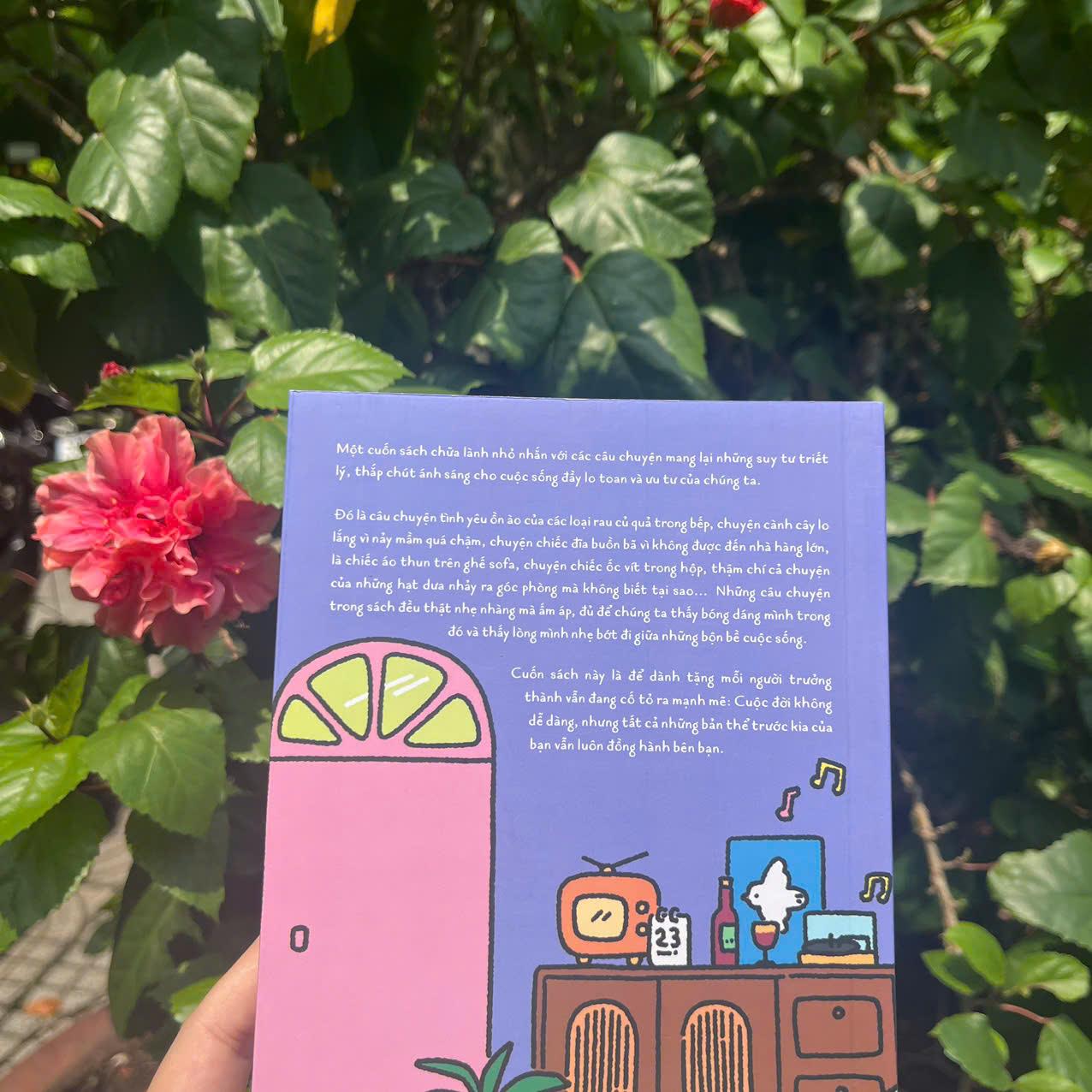 Đó là câu chuyện tình yêu ồn ào của các loại rau củ quả trong bếp, chuyện cành cây lo lắng vì nảy mầm quá chậm, chuyện chiếc đĩa buồn bã vì không được đến nhà hàng lớn, là chiếc áo thun trên ghế sofa, chuyện chiếc ốc vít trong hộp, thậm chí cả chuyện của những hạt dưa nhảy ra góc phòng mà không biết tại sao... Những câu chuyện trong sách đều thật nhẹ nhàng mà ấm áp, đủ để chúng ta thấy bóng dáng mình trong đó và thấy lòng mình nhẹ bớt đi giữa những bộn bề cuộc sống.