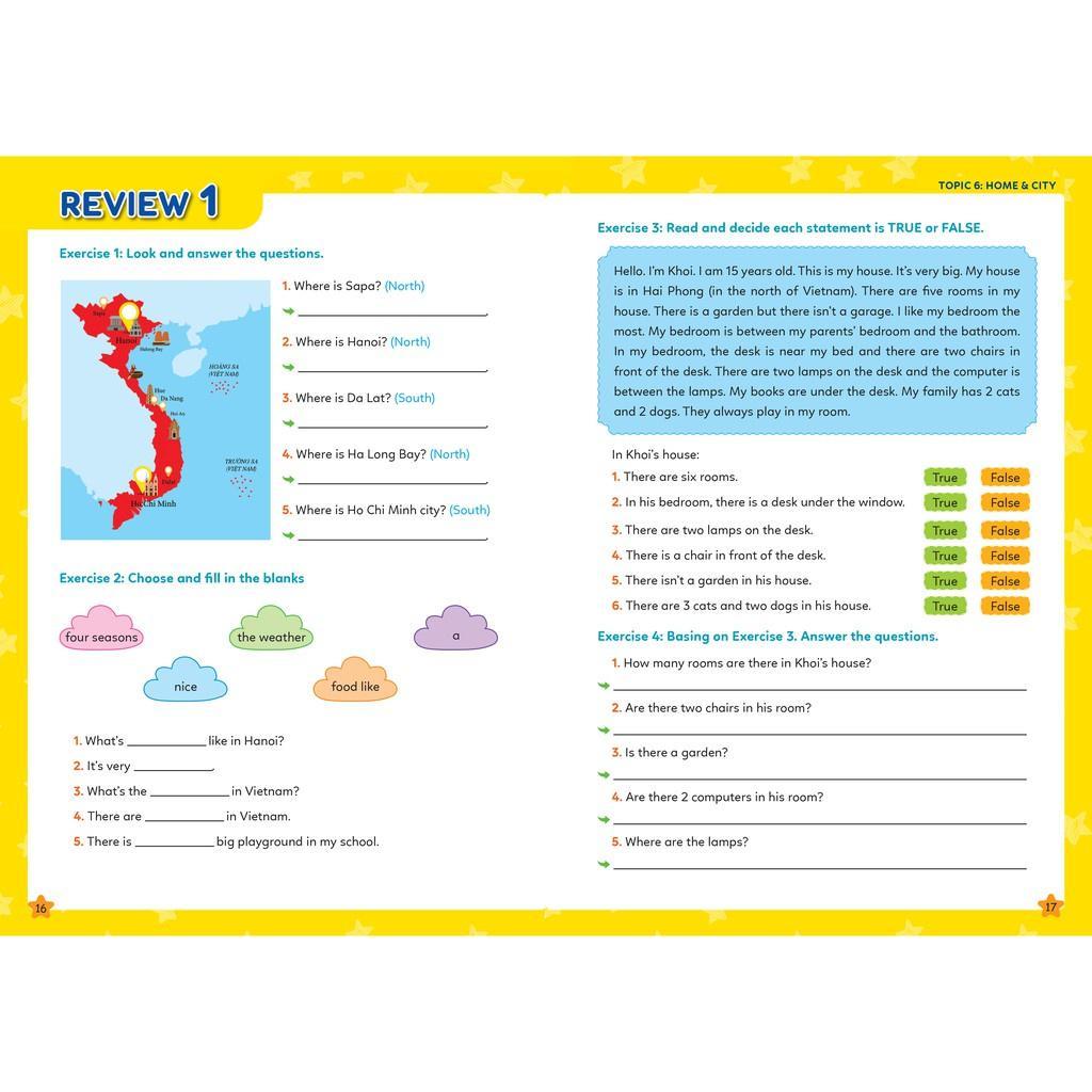- Mỗi topic có 2 bài Review – Đánh giá, kiểm tra tổng hợp Các bài Review – Đánh giá với các bài tập tổng hợp giúp các em kiểm tra, luyện tập thêm và ghi nhớ kiến thức vừa được học.