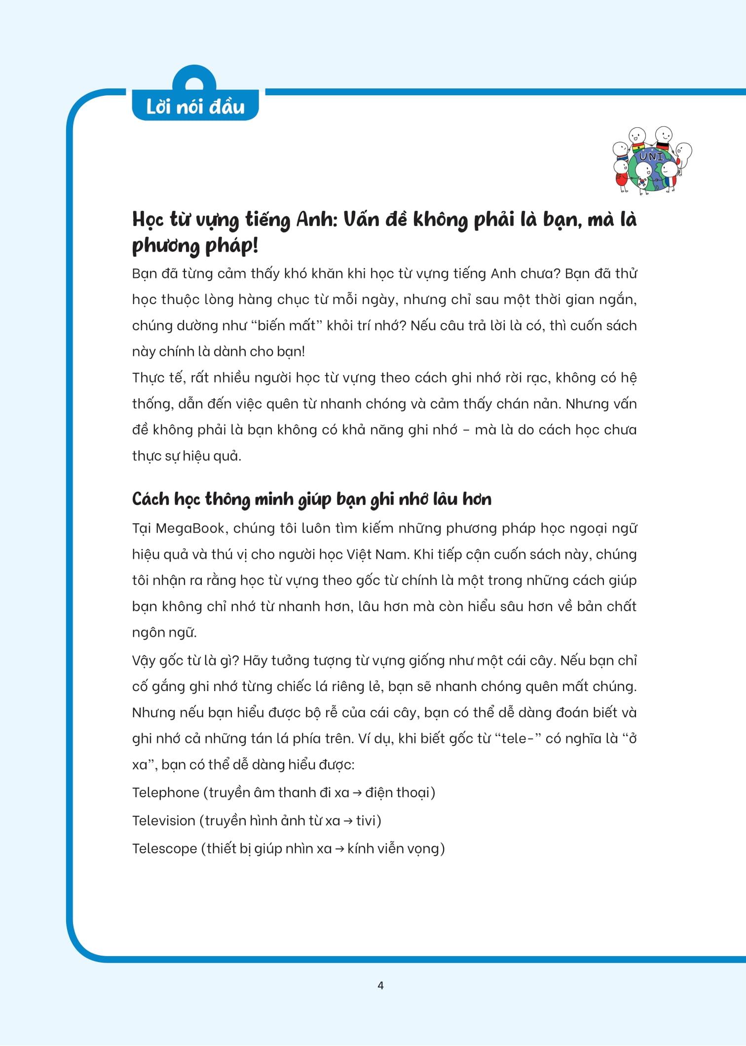 - Minh họa bằng hình ảnh sinh động, trực quan: Các gốc từ được diễn họa bằng tranh minh họa thú vị, giúp kích hoạt trí tưởng tượng, phù hợp với người học thích phương pháp học qua thị giác.