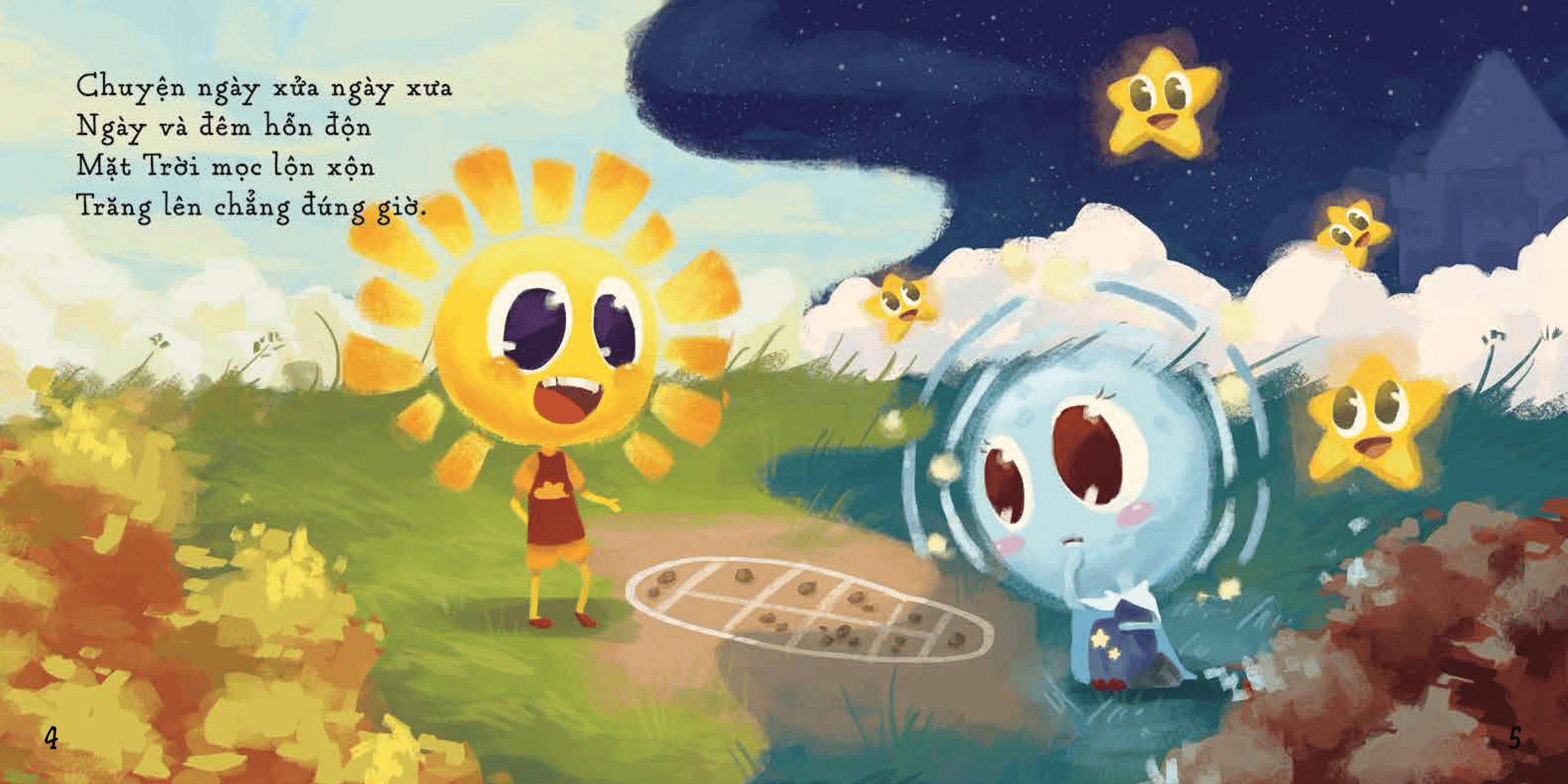 Đồng Dao Cổ Tích - Sách Song Ngữ Việt-Anh Cuốn sách kể về hành trình đi lạc vào thế giới siêu thực của hai chị em Thi Ca và Thi Họa. Đó là nơi của