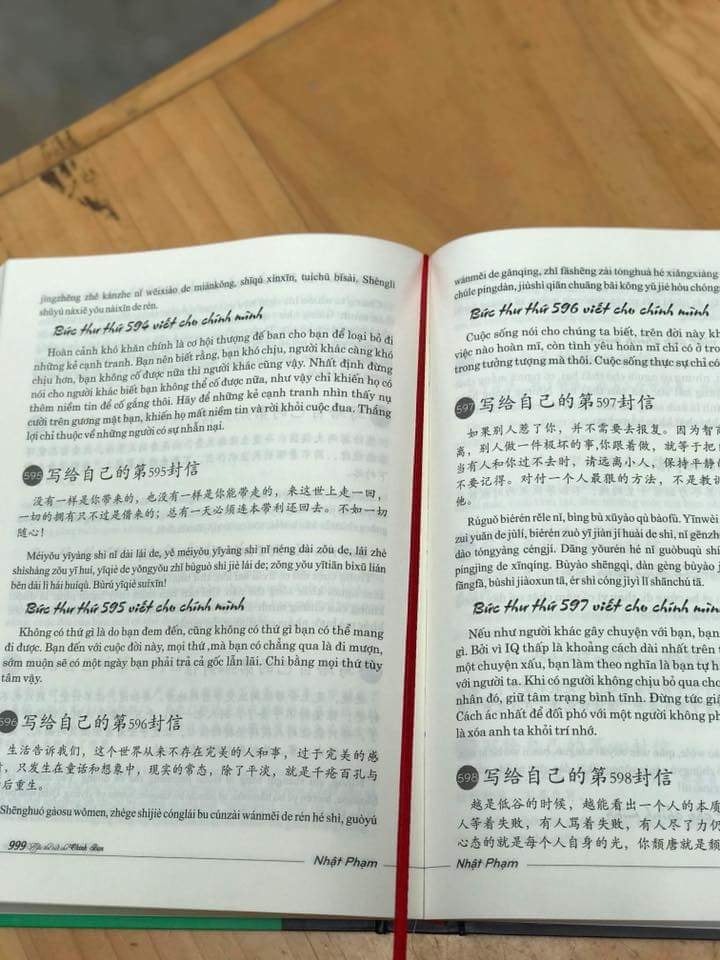 1. Giới thiệu sách: 999 Bức Thư Viết Cho Chính mình (Song Ngữ Trung Việt Có Phiên Âm) - (Bản dịch chuẩn và đầy đủ) Tác giả: Nhật Phạm Số trang: 509 Năm phát hành: