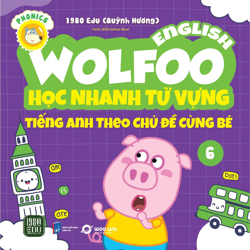Sách - Combo 6 Cuốn Wolfoo English – Học Nhanh Từ Vựng Tiếng Anh Tác giả: 1980Edu (Quỳnh Hương) THÔNG TIN XUẤT BẢN: Kích thước khổ: 20 x 20. Số trang: 30 Giá bìa: 354,000
