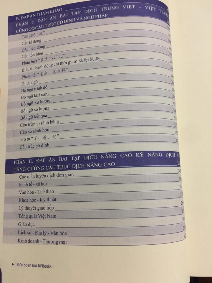 Đây là cuốn sách với tuyển tập các bài tập luyện dịch từ cơ bản đến nâng cao, phù hợp với các đối tượng bắt đầu học tiếng Trung với phần 1 "BÀI TẬP DỊCH TRUNG VIỆT-VIỆT TRUNG CỦNG CỐ CẤU TRÚC CỐ ĐỊNH & NGỮ PHÁP (Dựa theo ngữ pháp tiếng Hán Sơ trung cấp hiện đại", còn các đối tượng đã học đến HSK5-6 vẫn hoàn toàn có thể sử dụng để nâng cao kỹ năng biên dịch cũng như phục vụ cho phiên dịch với phần 2 "BÀI TẬP DỊCH NÂNG CAO KỸ NĂNG DỊCH VÀ TĂNG CƯỜNG CẤU TRÚC DỊCH NÂNG CAO (Có cung cấp cấu trúc và sử dụng).