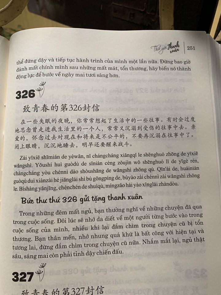Vậy nên, đừng vội vàng gập sách lại, hãy nhẫn nại và đọc tiếp, trong không gian tràn ngập ánh nắng, yên lặng đọc sách, và tận hưởng. Thế giới không vì cảm xúc của chúng ta mà thay đổi, đôi lúc chúng ta đau buồn, đôi lúc chúng ta phiền muộn, những cảm giác đó dường như luôn quấn chặt lấy chúng ta. Thực ta tôi muốn nói với bạn rằng, những điều này đều là những phần không thể thiếu trong cuộc đời bạn, dù cho nó có không làm bạn vui vẻ, thì cũng mong rằng bạn có thể lau đi những giọt nước mắt nơi khoé mắt, từ giây phút này trở đi, hãy học cách hạnh phúc.