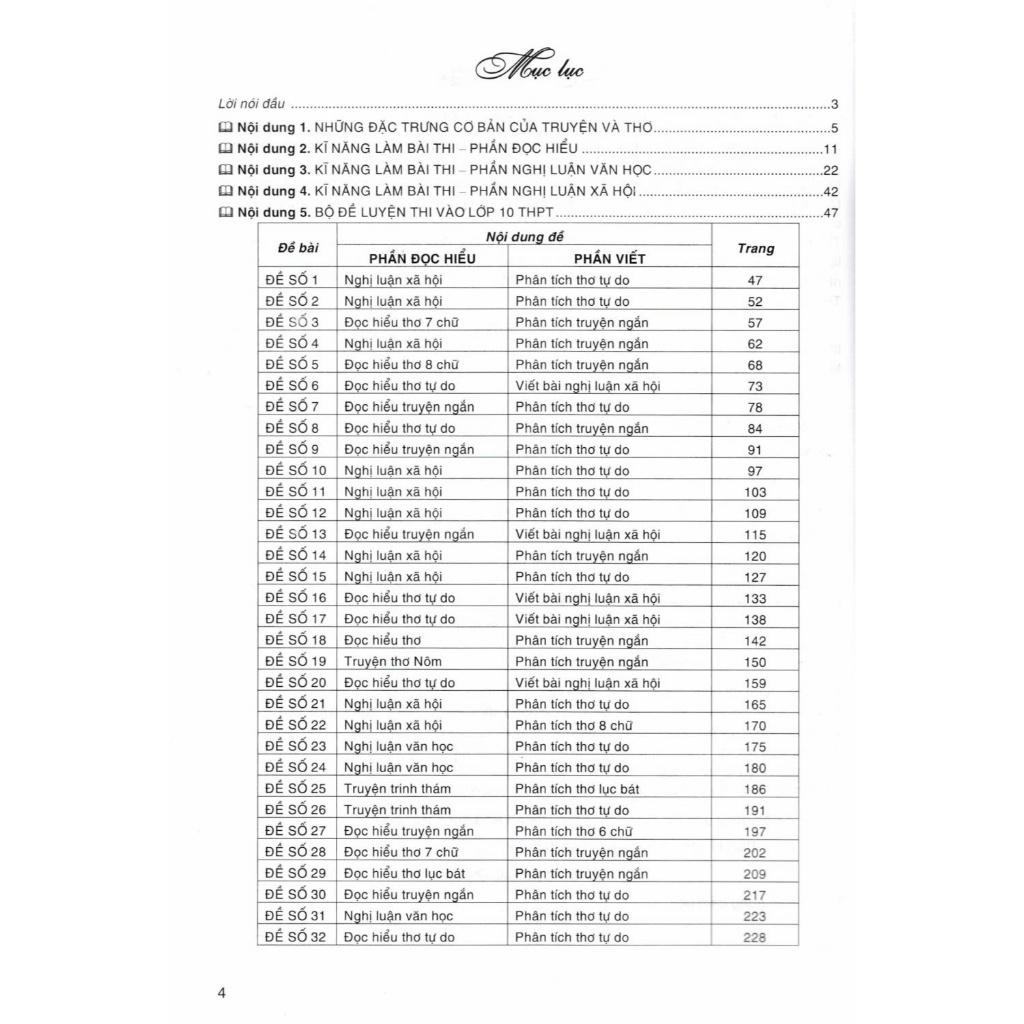 - Ôn Thi Vào Lớp 10 Môn Ngữ Văn - Tự Luận Và Trắc Nghiệm (Dùng Chung Cho Các Bộ SGK Hiện Hành) Phân luồng học sinh là một vấn đề có ý nghĩa quan trọng đối với sự nghiệp của mỗi con người và sự phát triển nguồn nhân lực quốc gia. Ở Việt Nam, phân luồng học sinh sau THCS là chủ trương đã được khẳng định trong các văn kiện của Đảng và chính sách pháp luật của Nhà nước. Chính vì thế, nguyện vọng học hết THCS có thể học lên tiếp một trường THPT công lập tưởng là điều đương nhiên, thế nhưng từ nhiều năm nay đối với học sinh tốt nghiệp THCS đã thực sự trở thành một cuộc cạnh tranh khốc liệt. Đây là một kỳ thi mà được đánh giá là căng thẳng, khó khăn và đầy áp lực. Bình quân cả nước chỉ tuyển sinh khoảng 80%, có những địa phương chỉ tiêu tuyển chỉ khoảng 60% học sinh tốt nghiệp THCS vào lớp 10 THPT công lập. Từ thực tế trên, nhóm tác giả Kiểu Bắc, Nguyễn Quốc Khánh, Nguyễn Thị Hoa gửi tới quý thầy cô, các em học sinh cùng toàn thể các bậc phụ huynh cuốn sách: ÔN THI VÀO LỚP 10 MÔN NGỮ VĂN - theo chương trình giáo dục phổ thông 2018 (hoàn toàn mới). Cuốn sách gồm có các nội dung sau: