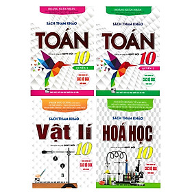 Combo Sách Tham Khảo Toán + Vật Lí + Hóa Học 10 (Dùng Chung Cho Các Bộ SGK Hiện Hành) (Bộ 4 Cuốn)   1. Sách Tham Khảo Toán 10 - Quyển 1 (Dùng Chung Cho Các Bộ SGK Hiện Hành)   Công ty phát hành Nhà Sách Hồng Ân Năm Xuất Bản 2022 Kích Thước 17x24 cm Tác Giả Hoàng Xuân Nhàn Số Trang 302 Nhà Xuất bản Đại Học Quốc Gia Hà Nội Bìa Mềm Barcode 8935092820903   2. Sách Tham Khảo Toán 10 - Quyển 2 (Dùng Chung Cho Các Bộ SGK Hiện Hành)   Việc sử dụng song song hai quyến sách (Sách giáo khoa, sách tham khảo) là cách tốt nhất để các em hệ thống được kiến thức trọng yếu trong chương trình toán 10, làm nền tảng vững vàng cho những năm học tiếp theo ở cấp học phổ thông.   Trong bộ sách này, tác giả đã cố gắng đưa vào các dạng bài phù hợp nhất theo từng chủ đề, được sắp xếp từ dễ đến khó kèm theo lời giải tự luận, trắc nghiệm ngắn gọn hiệu quả, phù hợp với xu thế thi cử, kiểm tra của các em trong thời gian tới.   Mỗi bài giảng luôn có bốn phần chính gồm: