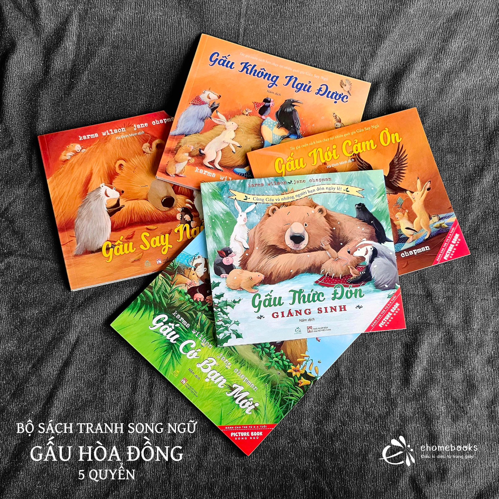 Bao gồm 5 cuốn sách: Gấu có bạn mới, Gấu nói cảm ơn, Gấu đón giáng sinh, Gấu say ngủ, Gấu không ngủ được.